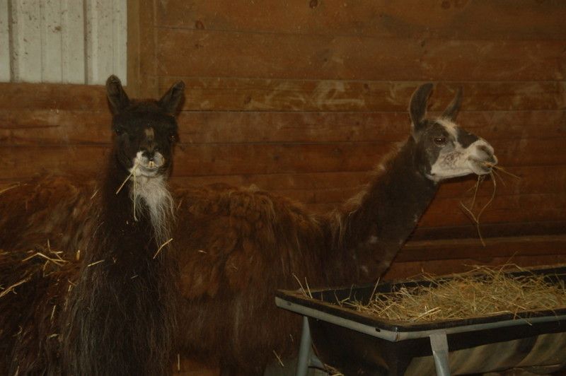 Too lazy to find a more recent photo but here is one on the day I brought them home... They are still not entirely friendly but they have never shown any aggression or spit at me, and I can easily get within arms length, they just don't like being touched... But, if I toss a rope around their neck (or halter) they instantly calm down and let me do whatever I need to do, so at least they are not crazy unruly...