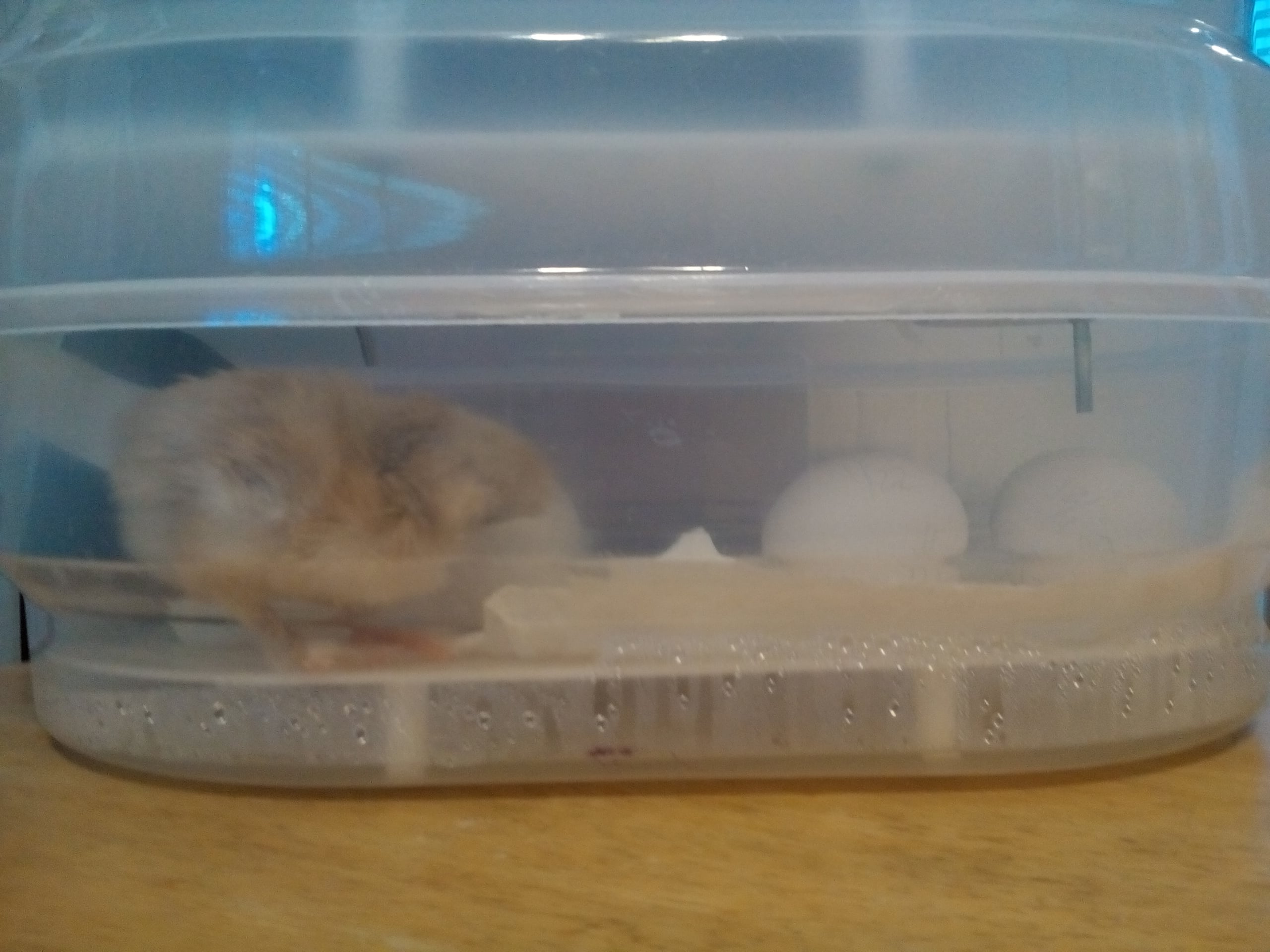 By the way, how long has that condensation been there? It has a tendency to form naturally, just after a hatching, but you really don't want it quite that wet otherwise.