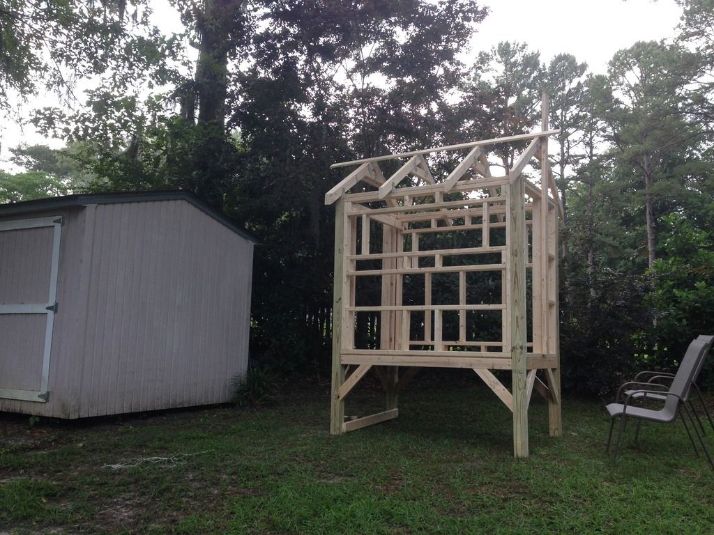 i've got the walls built and most of the trusses. I'm planning to sink the posts and get started on the permanent install this weekend.