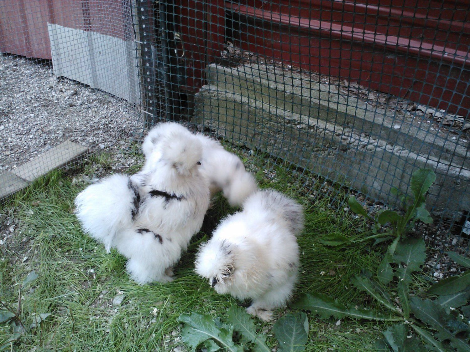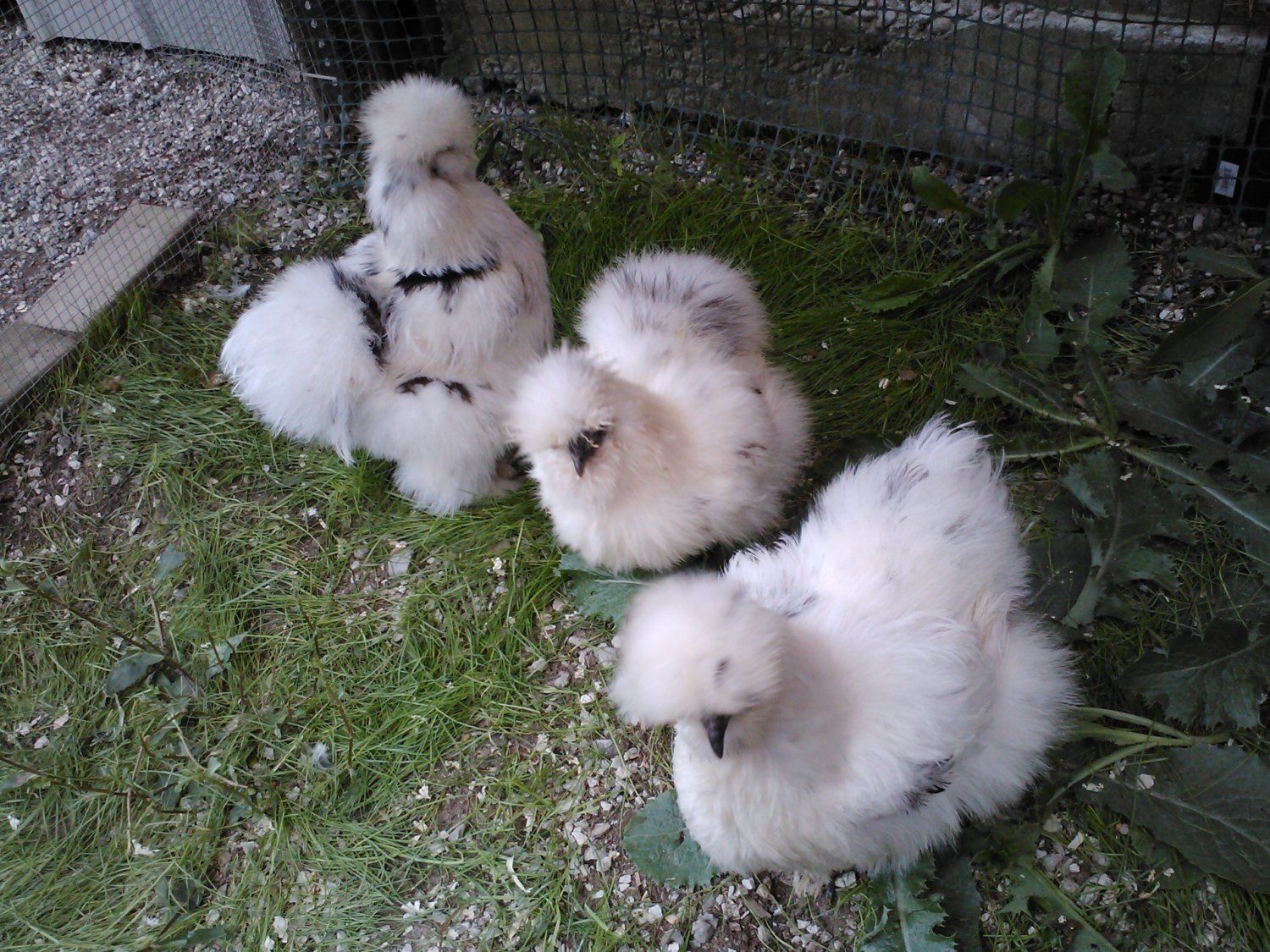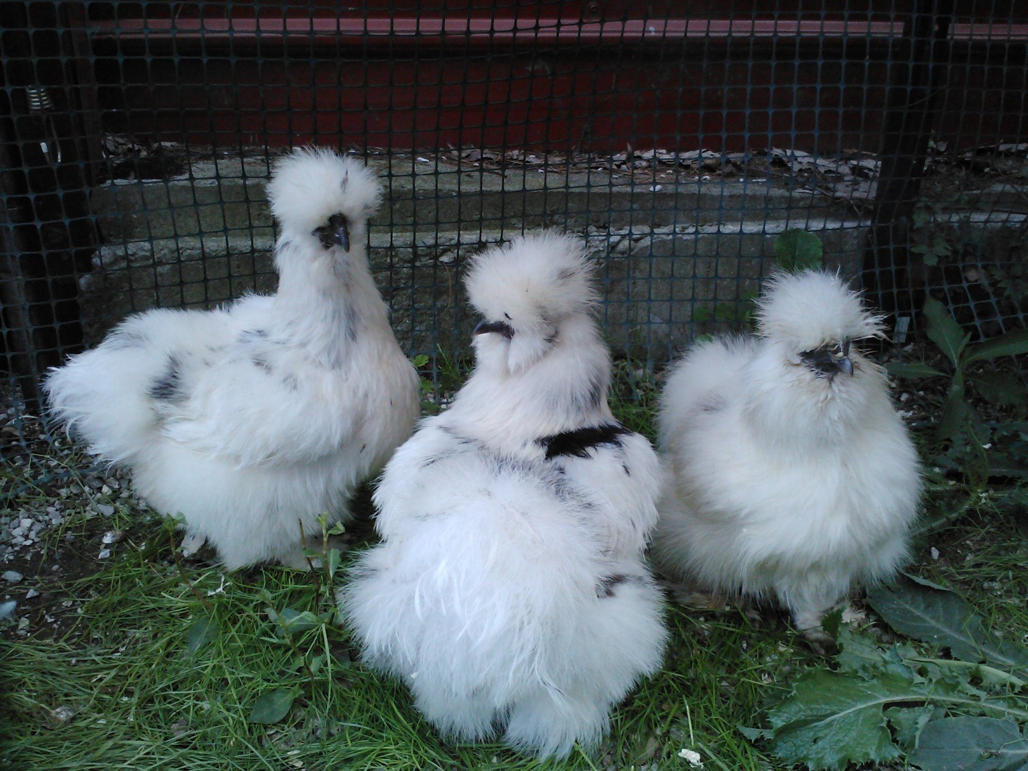 Thanks,yes her black spots are bigger and darker then the other two.Im very happy with them.Now i have 5 paint hens.They are so cute. I like the one with the more defined black patches, because I have never seen one who had plumage like that before.