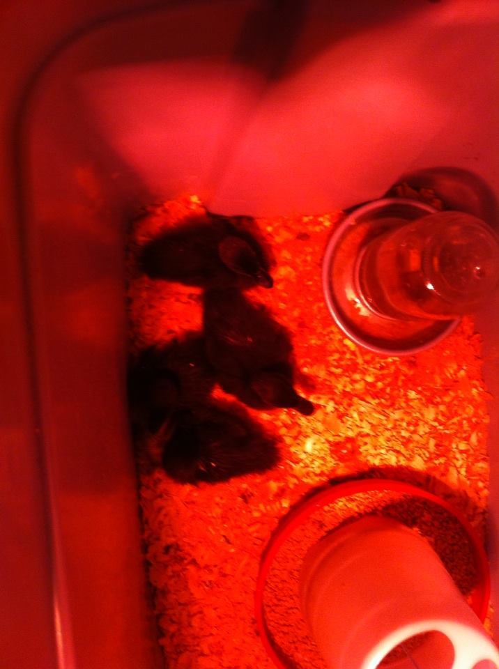 Went out to the hen house today and our turkey has hatched 12 ducklings and 10 guinea keets...unfortunately the grown guineas killed all of the keets and 8 of the ducklings before I knew any had hatched....was only to save these 4 babies!