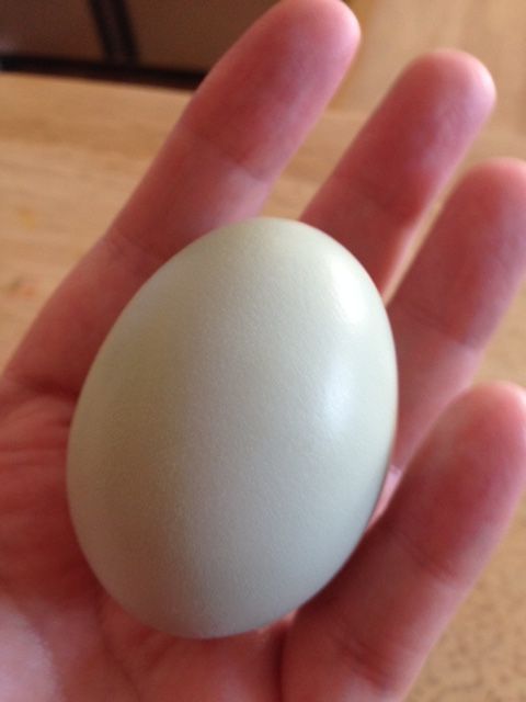 x2If she lays a green egg, then she is not, by definition, an Ameraucana. Ameraucanas must lay blue eggs to be considered purebred.