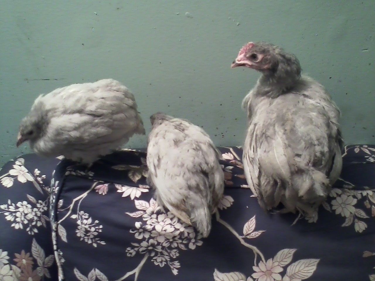 this is a roo chick that hatched with the same two pullets. Has any one else had so light blue and dark blue wheatens from the same hatch ? Does anyone have a pic of a dark blue wheaten roo ?