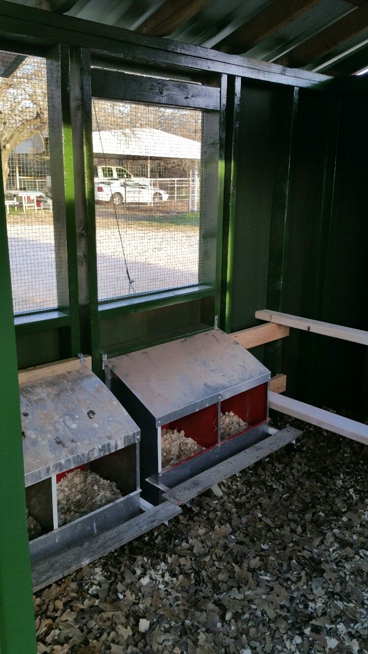 Taken from the inside, you can see that the roost poles are where the solid walls are to keep them away from drafts.