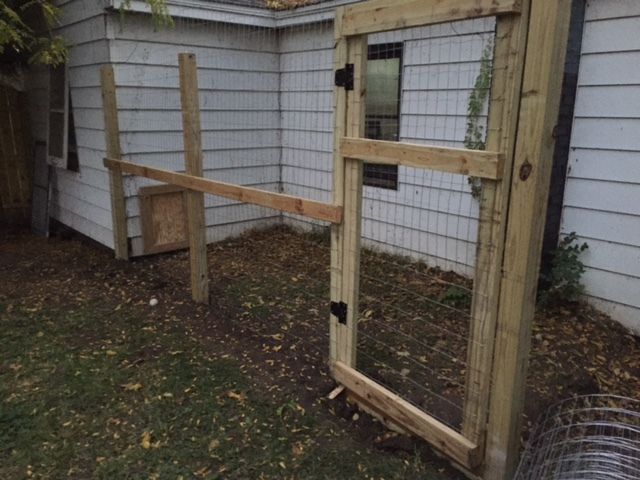 2. We went with the 2x4 welded wire to decrease cost (holy smokes that hardware cloth is expensive!!) We did bury it though, and there was an existing concrete slab buried, so the wire is against that underground.