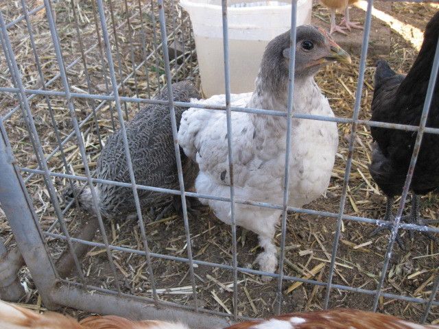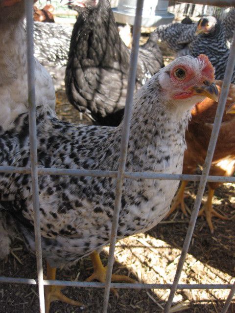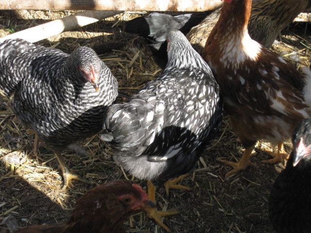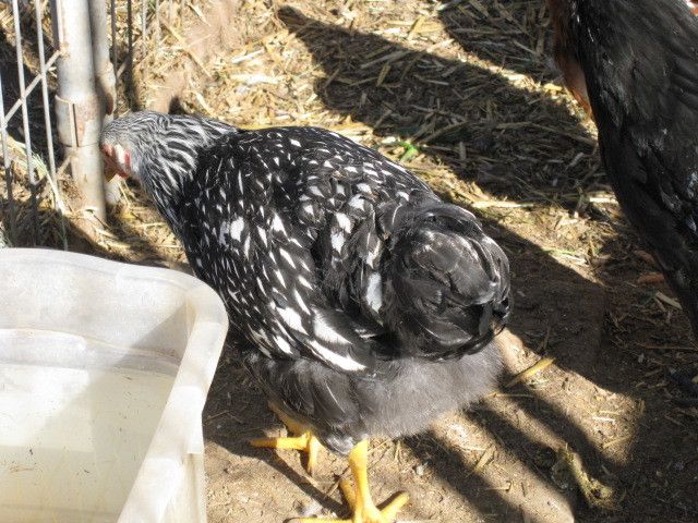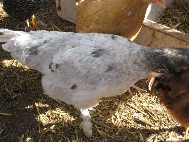second--some splash bird. The feather legs could be marans but the body looks awful light for a marans and I can't see the head.