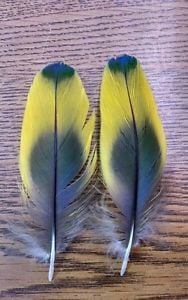 I am posting because I was wondering if anyone had Scarlet Macaw feathers that they would be willing to part with. I tie flies and Scarlet Macaw is one of the feathers called for in some of the patterns that I tie. I would be looking for the wing covert feathers that are yellow with the blue tips and also the center tail feathers from the bird. Lastly I would be looking for the powder blue colored tail coverts. Here are a few photos of some of the flies that I have tied and also the feathers that I am looking for. If you have some of these feathers and would be willing to part with them shoot me a PM.
