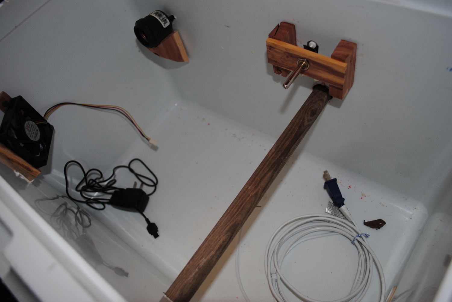 I am looking for some help with the wiring phase of my homemade incubator. I am trying to connect a weather proof light socket, one of those reptile incubator thermostats, and an old box fan plug.