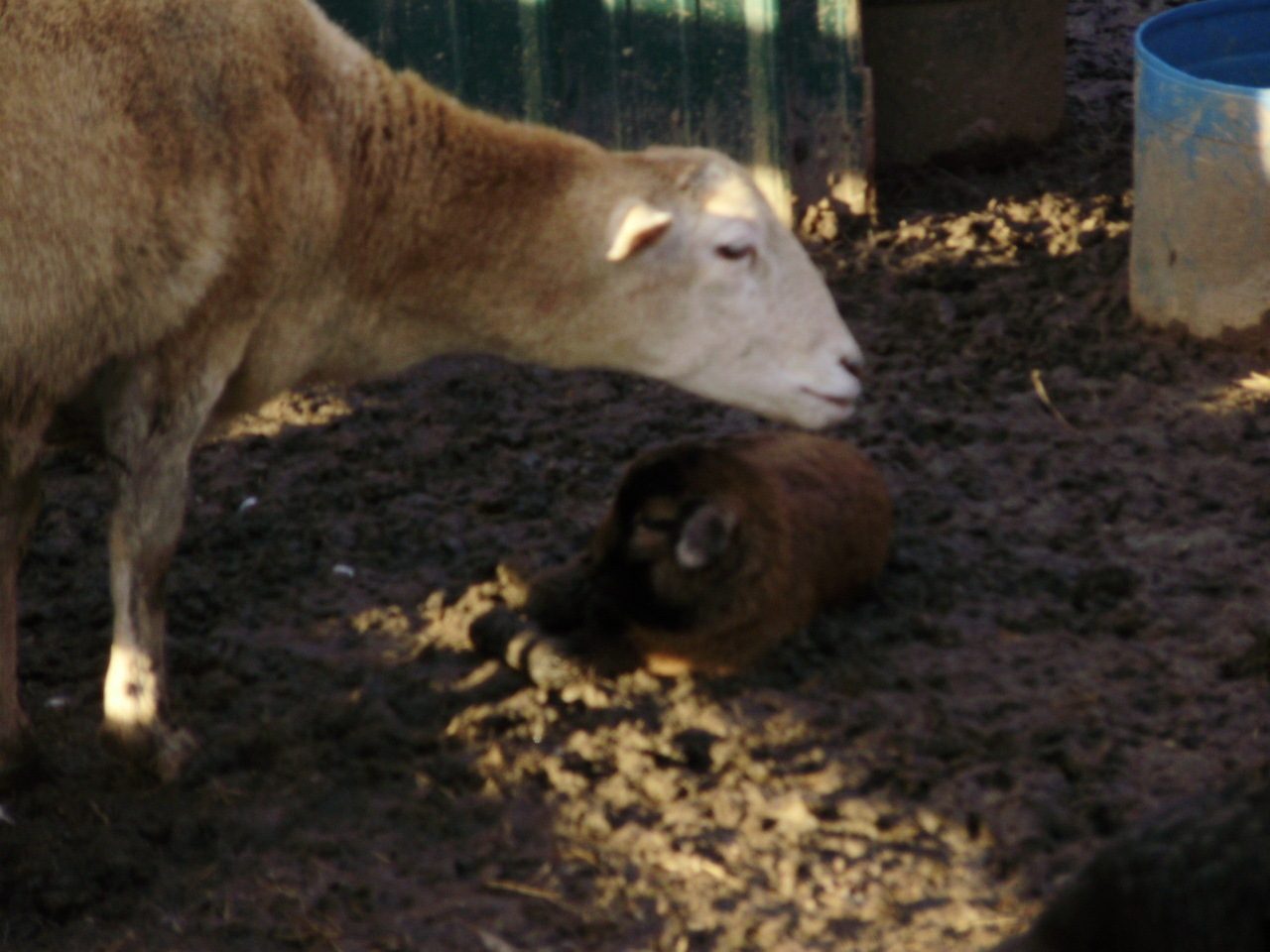 I guess all the rain and mud couldn't stop this lamb from being born on yesterday. She decided to drop it in the mud. :he I had to prepare a hay bed in their shed and carried the little lamb inside. The little bitty slept like a log throughout the night. Both mommy and baby are fine. The lamb that was born last month is showing signs of jealousy. This mommy was his "play rough" friend and she was always knocking him around and wrestling with him. So, now that she has her own baby, she hasn't been spending time with him or horsing around with him and he is feeling left out. Don't you know that little buggar has been crying VERY LOUD ALL day and ALL night since she had her baby. He is a spoiled brat and is jealous of the new baby. He cried all night long!!!!!!!!!!!!!!! :smack