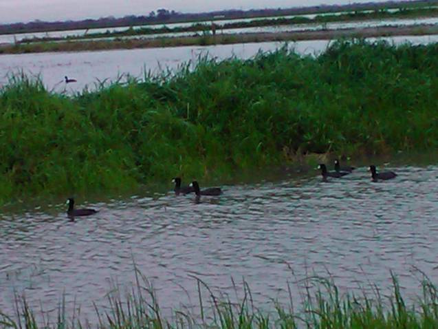 Mike, since you are the duck expert and all around Mr. Know It All, :gig I wanted to ask you something. This weekend as I was driving home, I drove past the crawfish ponds in my area and I saw what I thought were ducks swimming around. I turned around to try to take pictures but as I got close these "ducks" started running on the water. They were dark in color and it appeared that they had white/yellowish bills. I have know idea what they are. A friend told me they were birds but I said no way. It looked like they had webbed feet. I managed to take pics of them but the pics are not good. Take a look and let me know what you think. Whatever they are, they were absolutely beautiful.