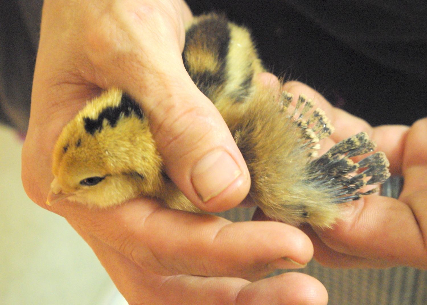 Coq Au Vanessa showing her little featherlets, day 3