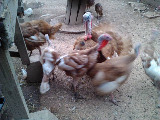 I have to keep my camera on hand because I never know what I'm going to see. There was a lot of chest bumping going on in the chicken yard yesterday. They are headed for the POT if they don't sell first.