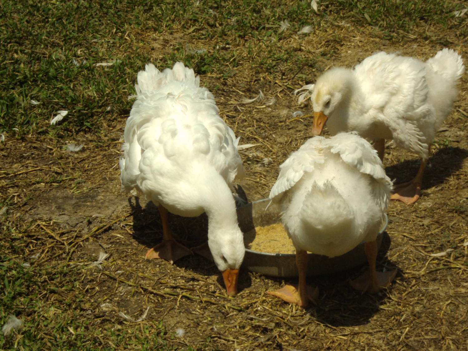 I think both of your splashes will molt out to be almost completely white. I'm very interested in the splash #2! I guess we will figure out what to pair him/her with when they are sexed. The splash looks like typical juvenile white feathering. The black feather may indicate a color carrier though! I really wish my white girl would venture out into the pasture. Her beak is not nearly as orange as yours, and I credit it to her only wanting to eat what the chickens eat! She is fat and in good health though. I would just like to diversify her diet!