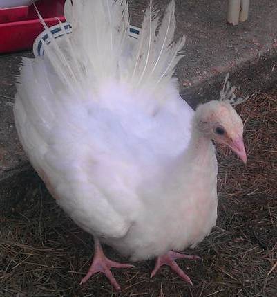 Here are a few pics of my white pea that hatched on May 30, 2012. He was outside on the back porch yesterday showing off.