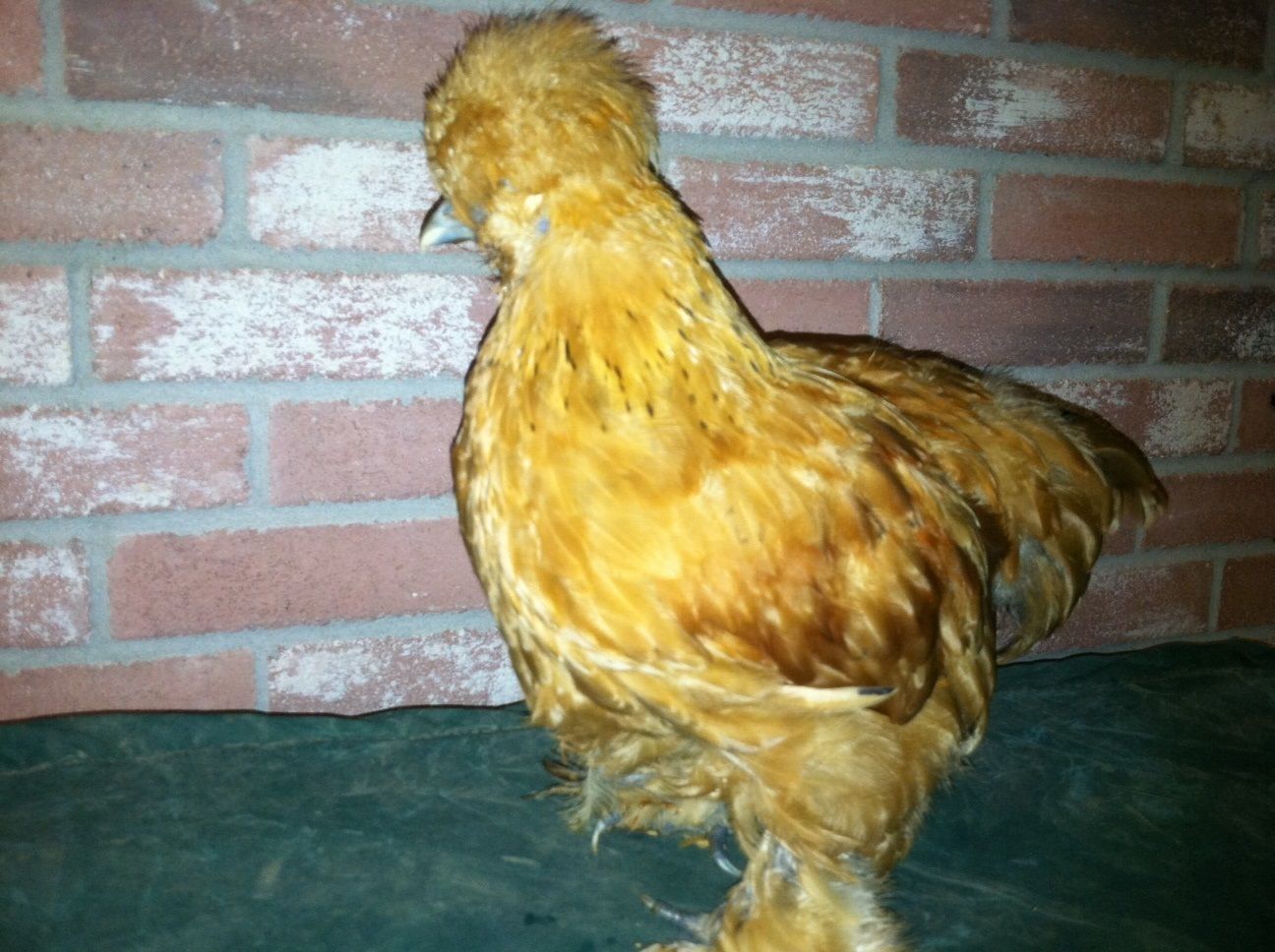 All the way home I kept thinking I should have brought some males with me to give you. If you want, I can put a couple on the side and hold them for you. One to breed to your Silkies (he will look just like the hens you just got) and a smooth to breed to your new Sizzles. I have the perfect smooth to go with that buff hen, lol!