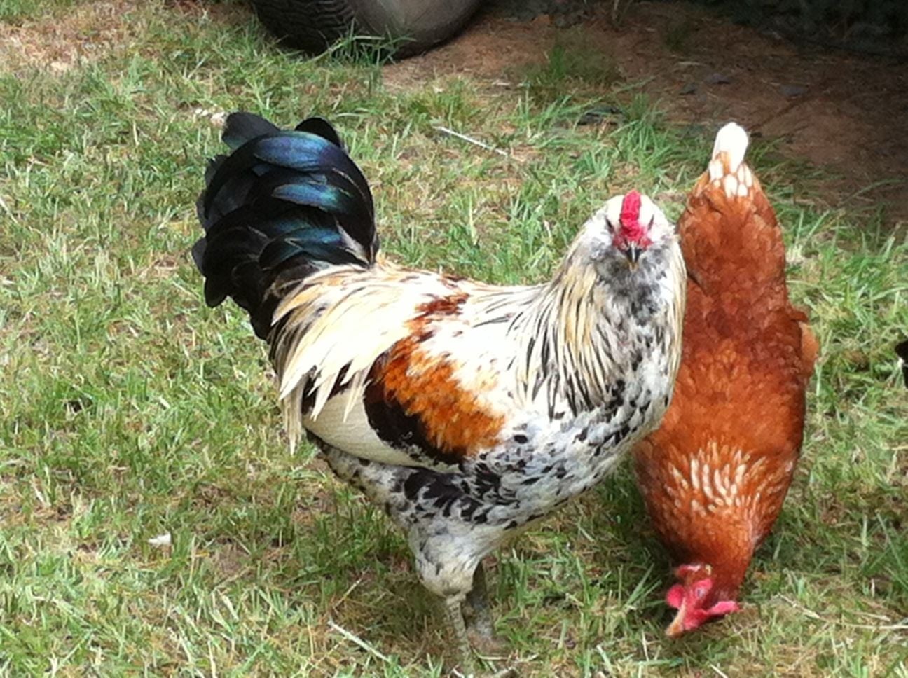 your rooster in the picture is an EE or what's called and Easter Egger a hatchery rendition of an Americana. There are many breeds that would serve your purpose well white and barred Rocks, RIReds, New Hampshire, Delaware these are just a few of whats called dual purpose breeds look for that description and whatever color or pattern suits your fancy and go for it.