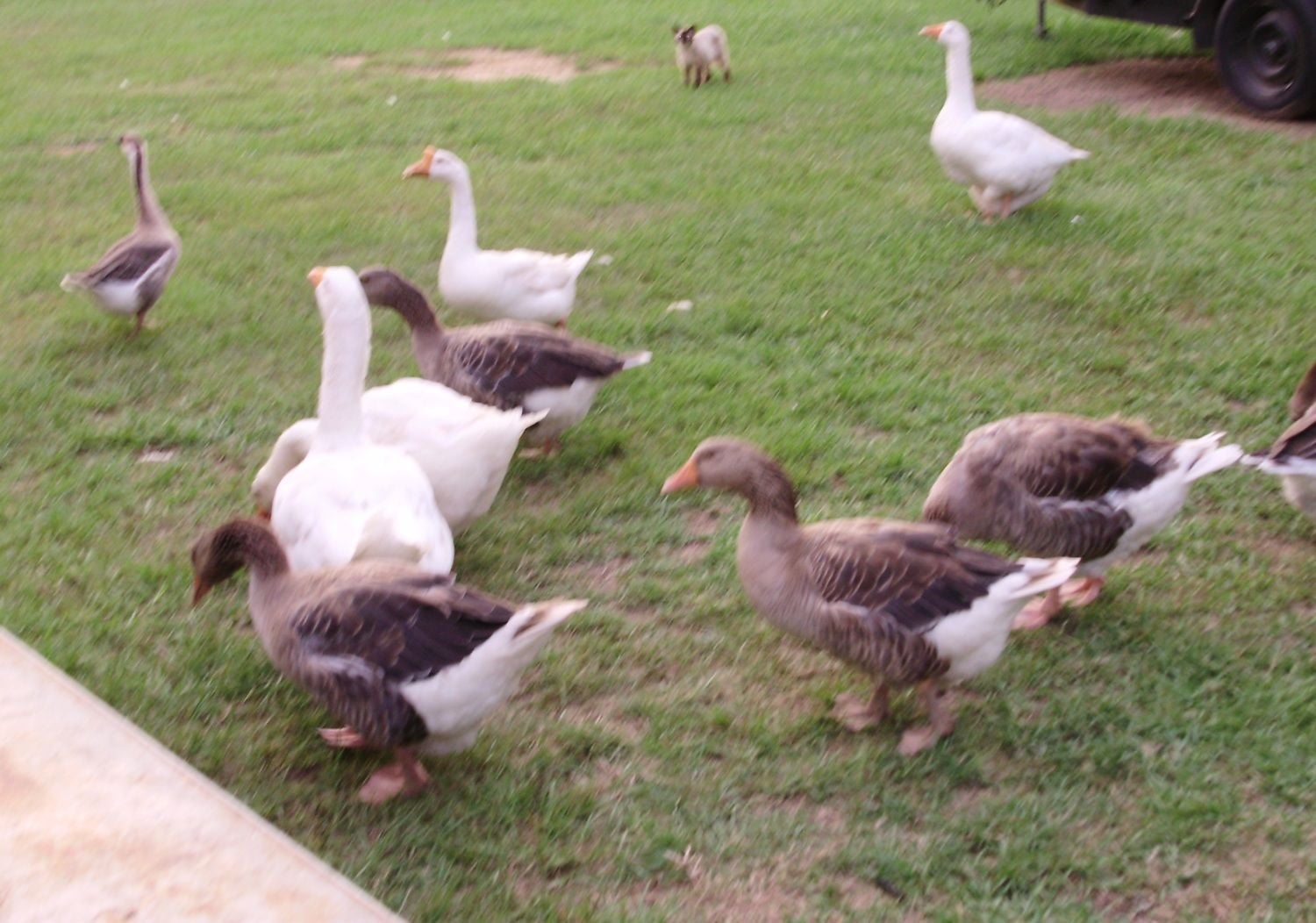 Beautifull, BAD, BAD, BAD geese !!!Sheep are kinda, sorta, well maybe easy? I have hair sheep, so there is no shearing. You just have to keep their hooves trimmed and de-worm them. Other than that, they LOVE grass. Best lawnmowers EVER!