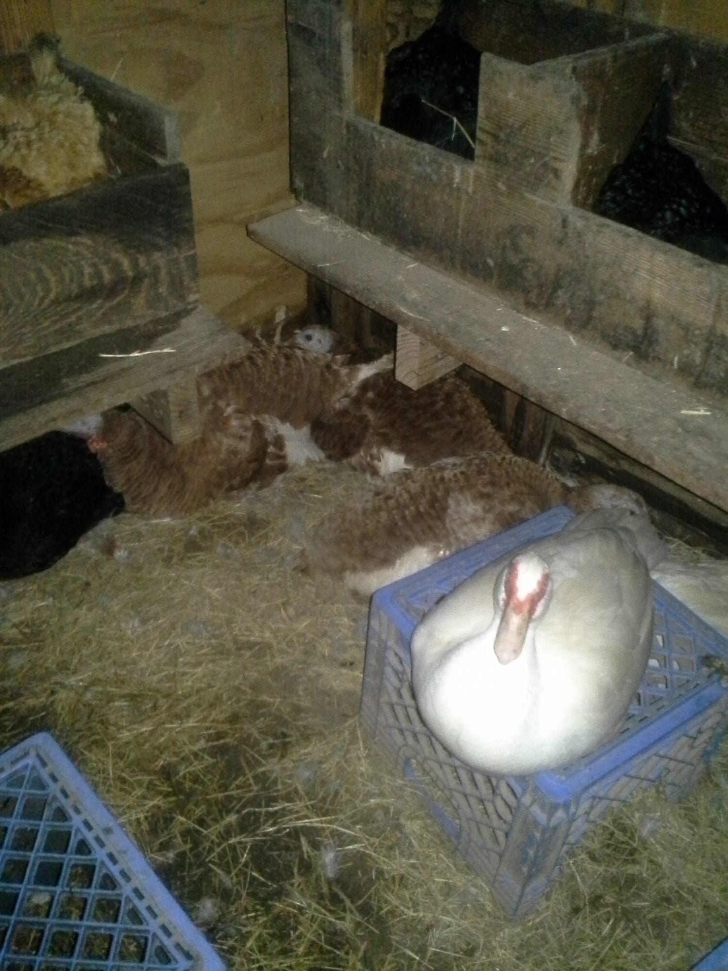 Saturday hatching. It takes a village to hatch this 1 measly gosling. Go figure. With all of those broody hens on this egg and stealing it from each other, the temps had to have exceeded 500 degrees at any given time. Seriously???