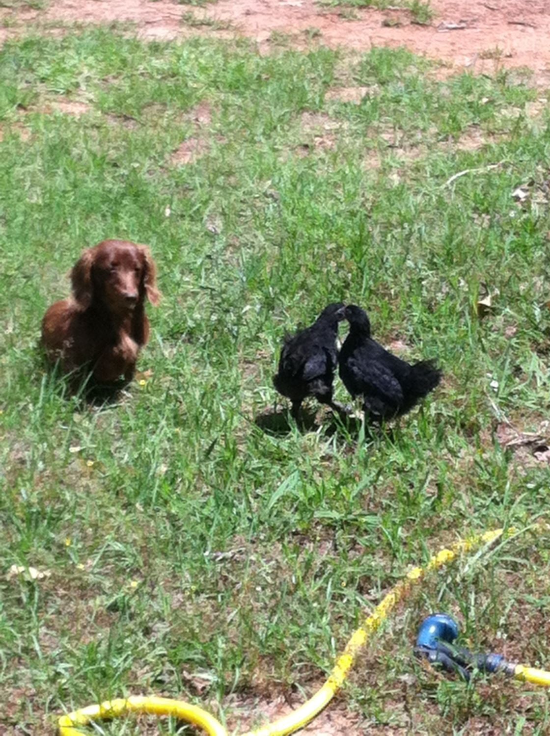 Awww. She's so cute. Obviously takes her role seriously as a "chicken guard."