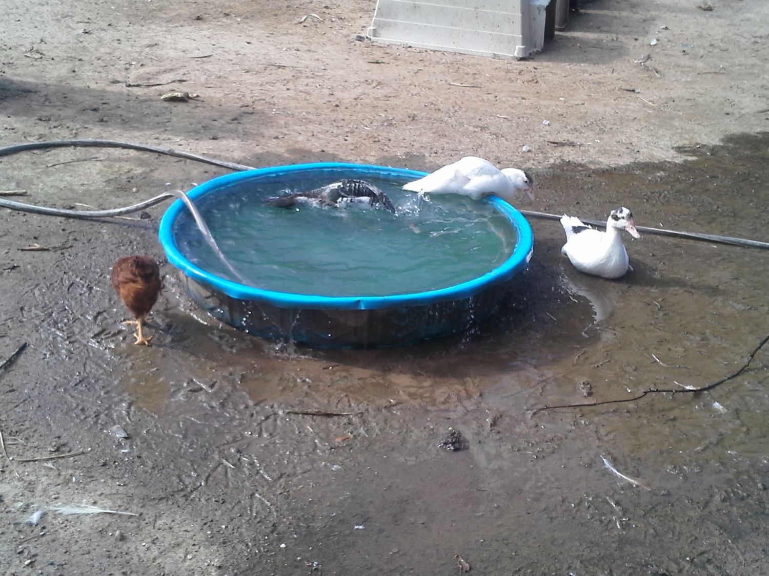 I am kind of concerned about my sassy Tiny. He is my Cochin roo. When we went check on them and give them some tomato trimmings his comb was a little funny colored towards the back end of it, like a darker, maybe even purplish color. I hope he doesn't kick the bucket! I sure would miss that little fluff ball. We love to see his sassy little dance. And he LOVES the little bantam we got from Terri. He kicks the other bantams off the perch on whatever side he wants for the two of them.
