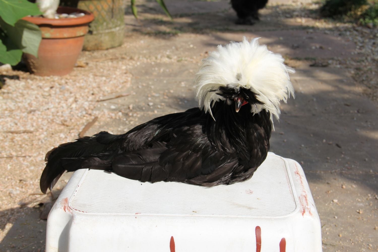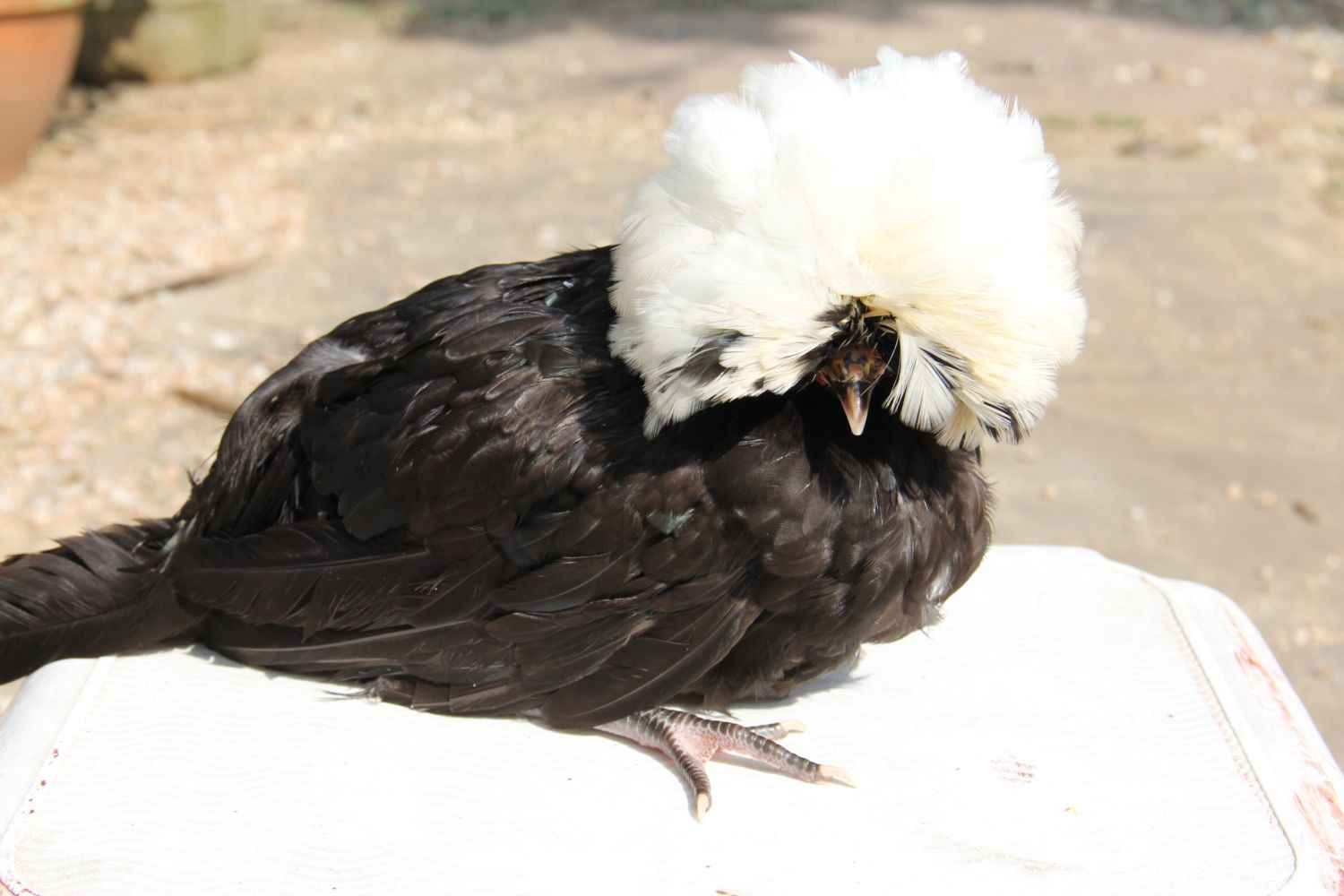 Gave my first chickens baths yesterday. Einstein before...