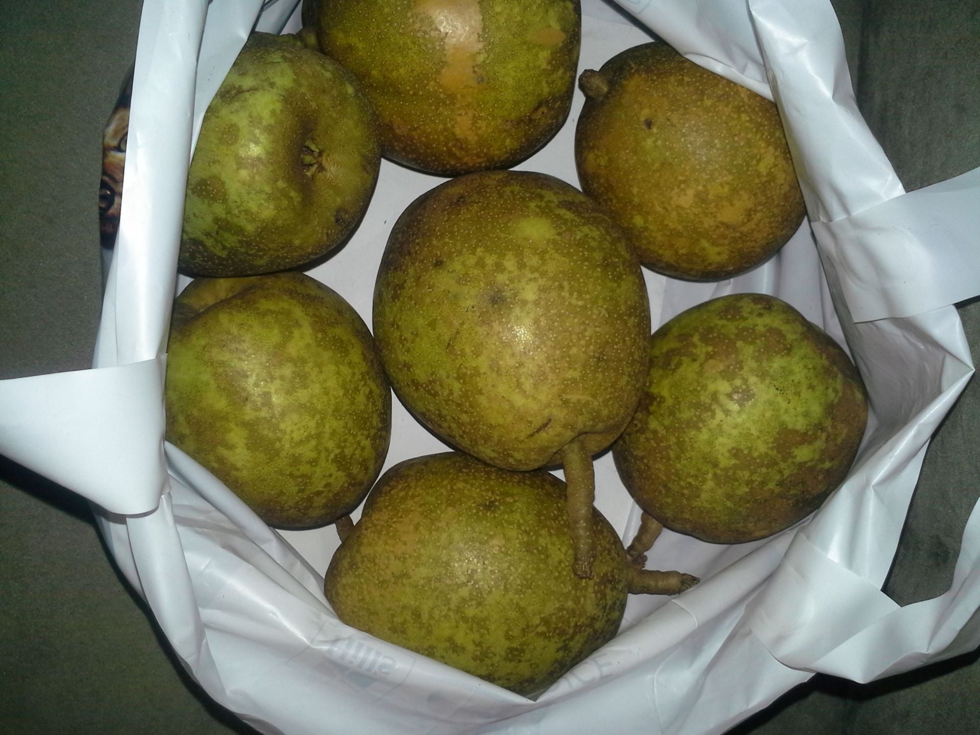 I said to myslef there is no way that I can tackle all of those muscadine. So, I had brought he and his wife 5 dozen eggs for their kindness being as though he was so kind to allow me on his property to pick all of the muscadine that I wanted and did not charge me one single penny. I thought that was the least that I could do. So, after an hour of picking the muscadine, I was overwhelmed and I had to shut it down and go home . But before I left his wife walked back up the mile long drive way and brought me some of the BIGGEST pears that I have ever seen in my life. I was shocked. She said that she was very appreciative for the eggs. So here is a pic of the muscadine that I picked. I picked 5 gallons. He told me that I can come back any time I want and pick what I want. His wife said that their muscadine just go to waste every year because they really don't pick it.