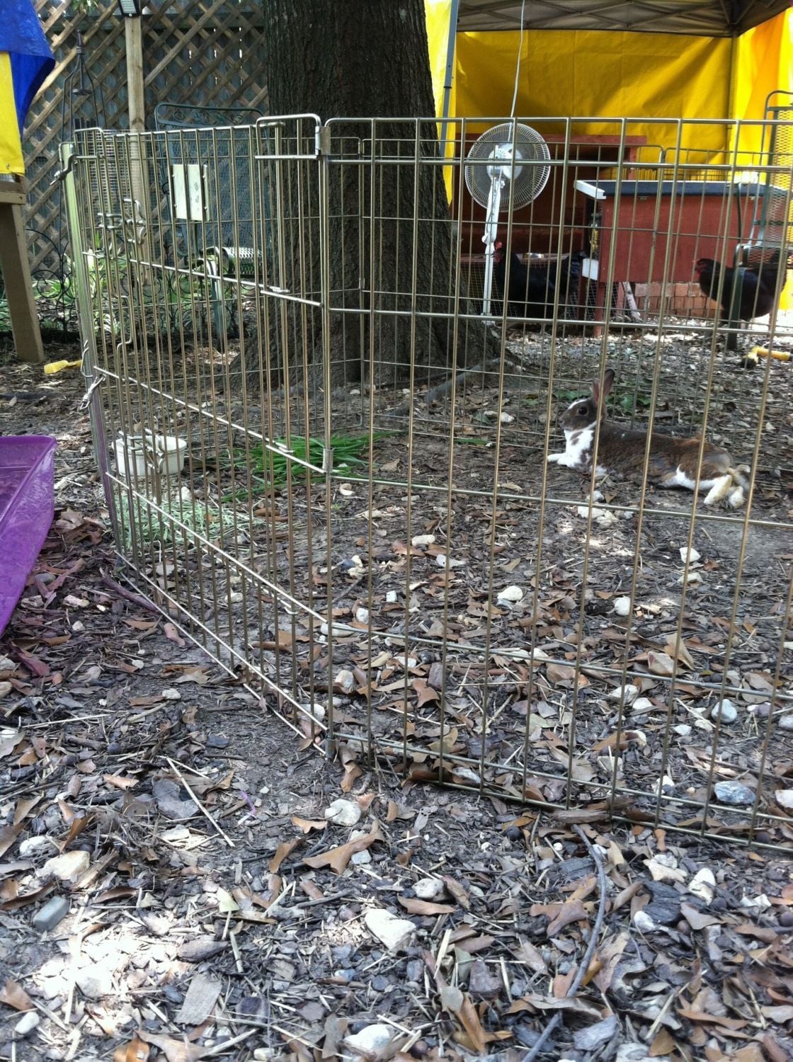 Bunny daytime playpen in chicken yard.