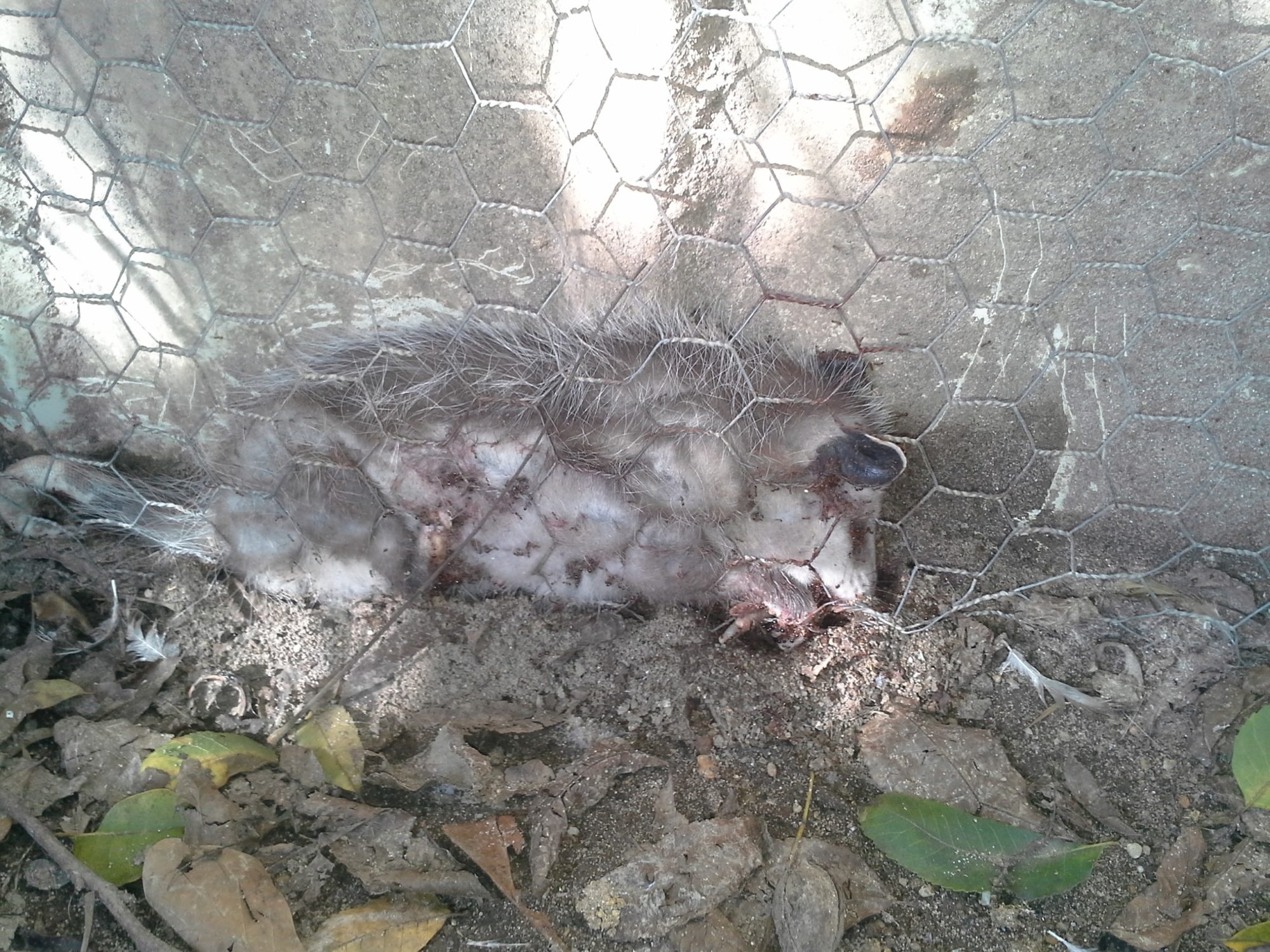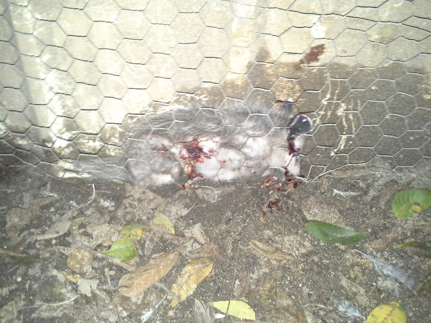 The fire arm at the back door is also used for 2 legged creatures who chose to venture off onto the krazy chicken lady's property and who have psychotic/hallucinating thoughts that they are about to attack and harm a sweet little quiet well mannered girl like me