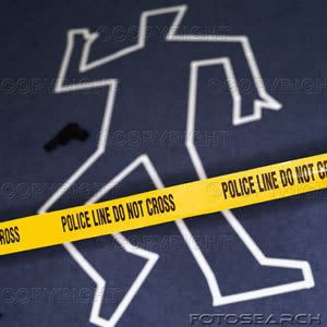 Oh, you KNOW that I WILL take pictures. I will have a pic of the chalk drawn around his body in addition to the "Police Line Do Not Cross" yellow ribbon.