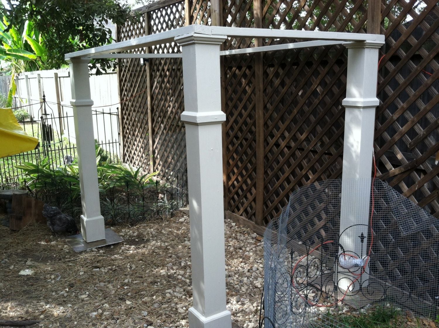I'm excited, I got the basic structure done on the chicken shelter. All deep screws and all painted. The posts are super heavy, so this was HARD for me to put together by myself. But it looks,so far, hoe I envisioned it.