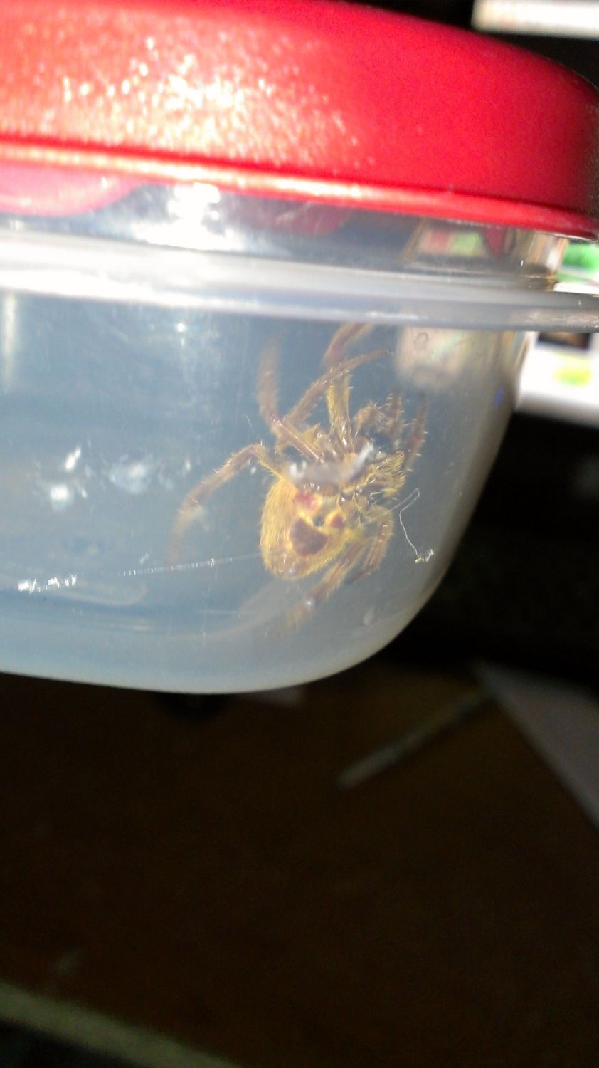 Is it just me or does the but of that thing look like a pumpkin? I would freak out finding that in the doorway of my coop. The last spiders that braved their way into my coop got painted in the coop (they picked painting day, all I had on hand).