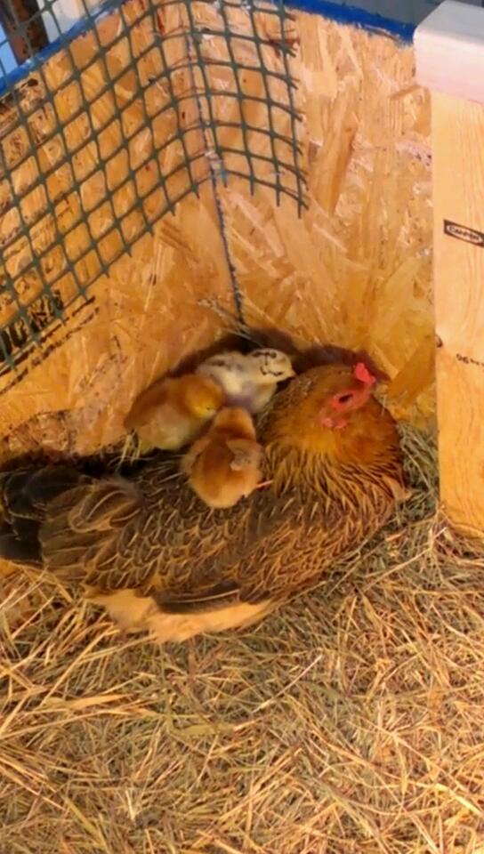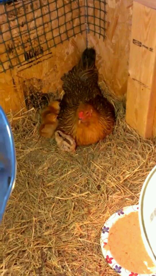 I searched for any signs, looked for entry points and cleaned, searched for a lid to brooder came back and found my EE hen snuck in and snuggled up with babies. i didn't think EEs went broody, maybe she's laying an egg and showing the biddies some love? She's making all sorts of weird noises and trying to cuddle. weird because she's Not like that