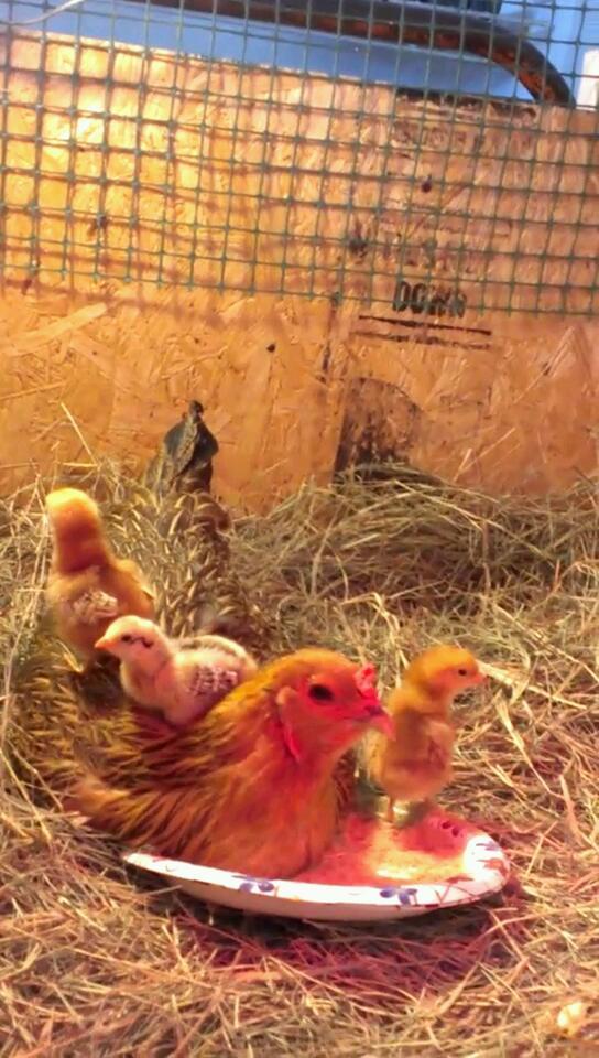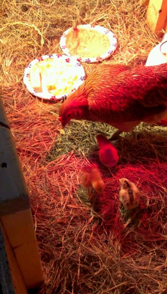 Scrambled up some eggs and garlic and oregano from the garden for Blue, my new broody EE hen and her new adoptees. She did great last night. Then fed the peeps some omelet before her self
