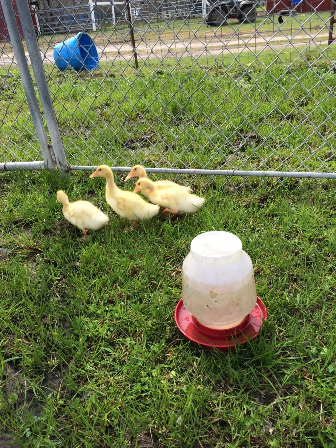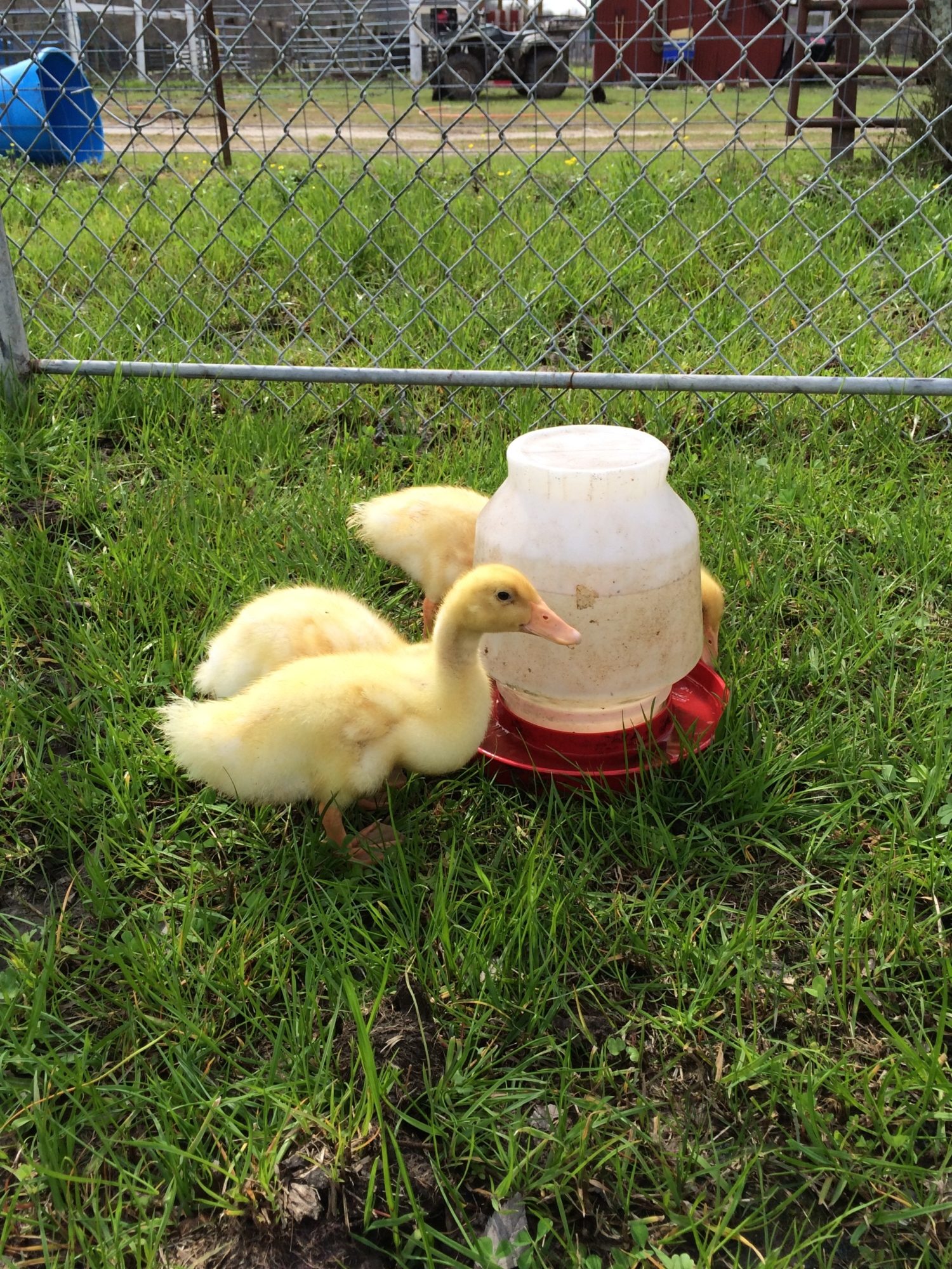 Has anyone here raised pekin ducklings? I'm raising some for the first time, and I'm worried about weight. Can they get overweight at three weeks? Mine have a noticeable fat pouch, and when you pick them up they're squishy. This pictures are from Monday, and I feel they've only gotten fatter since then. This isn't their pen, by the way. I was just letting them roam around, since they still sleep in the brooder at night.