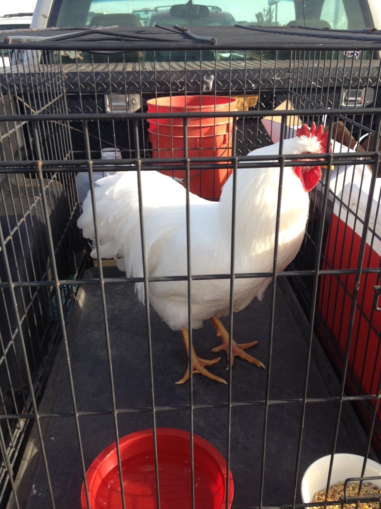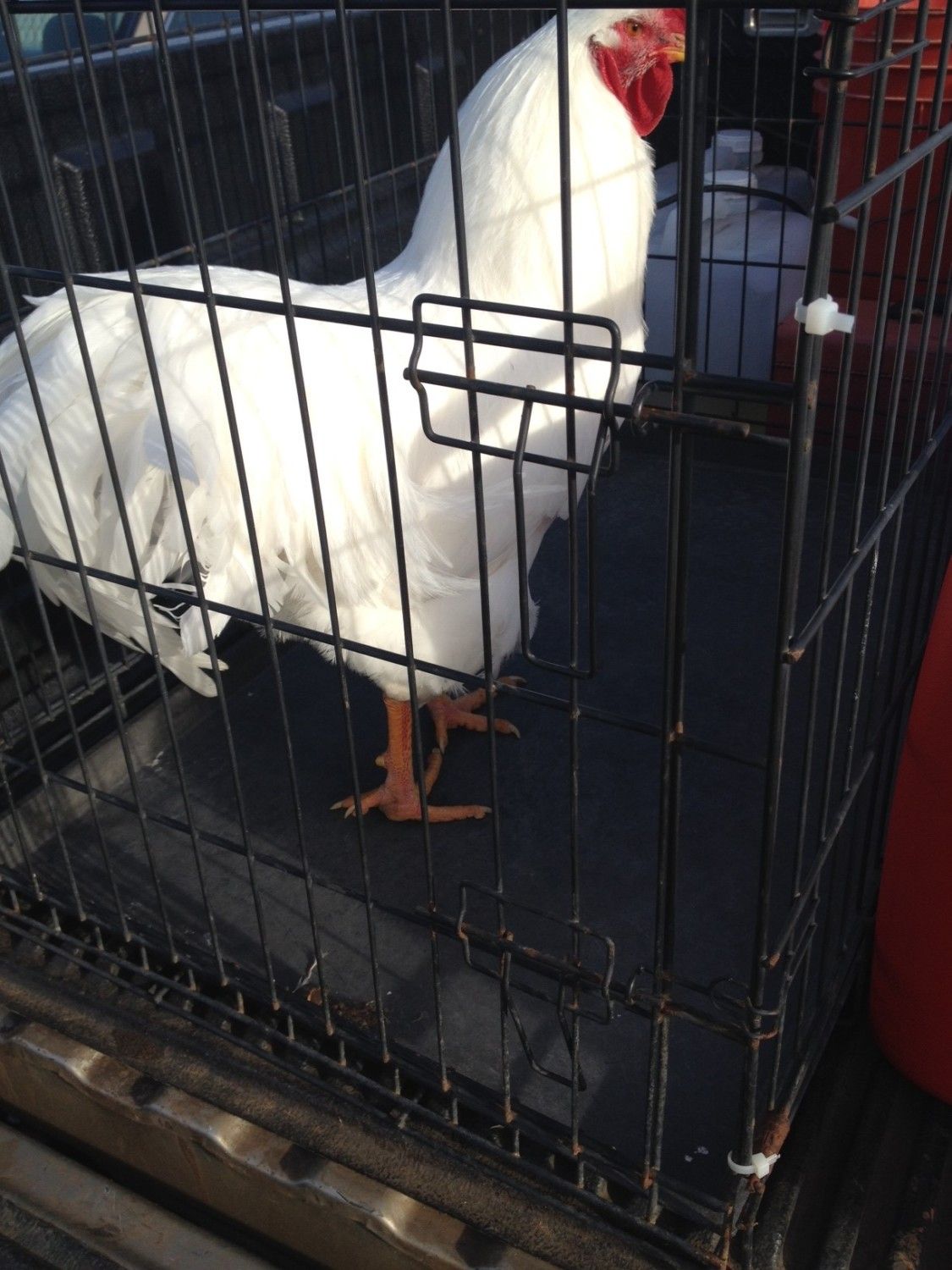We have a 2" x 2" x 4" high cage with shelves and little ladders they can climb around on for when they get bigger than "peep" size, but also have some old rabbit cages I used to use for, well, rabbits.