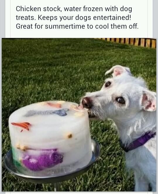 Saw this on facebook, I used beef broth my dog LOVED it all day!