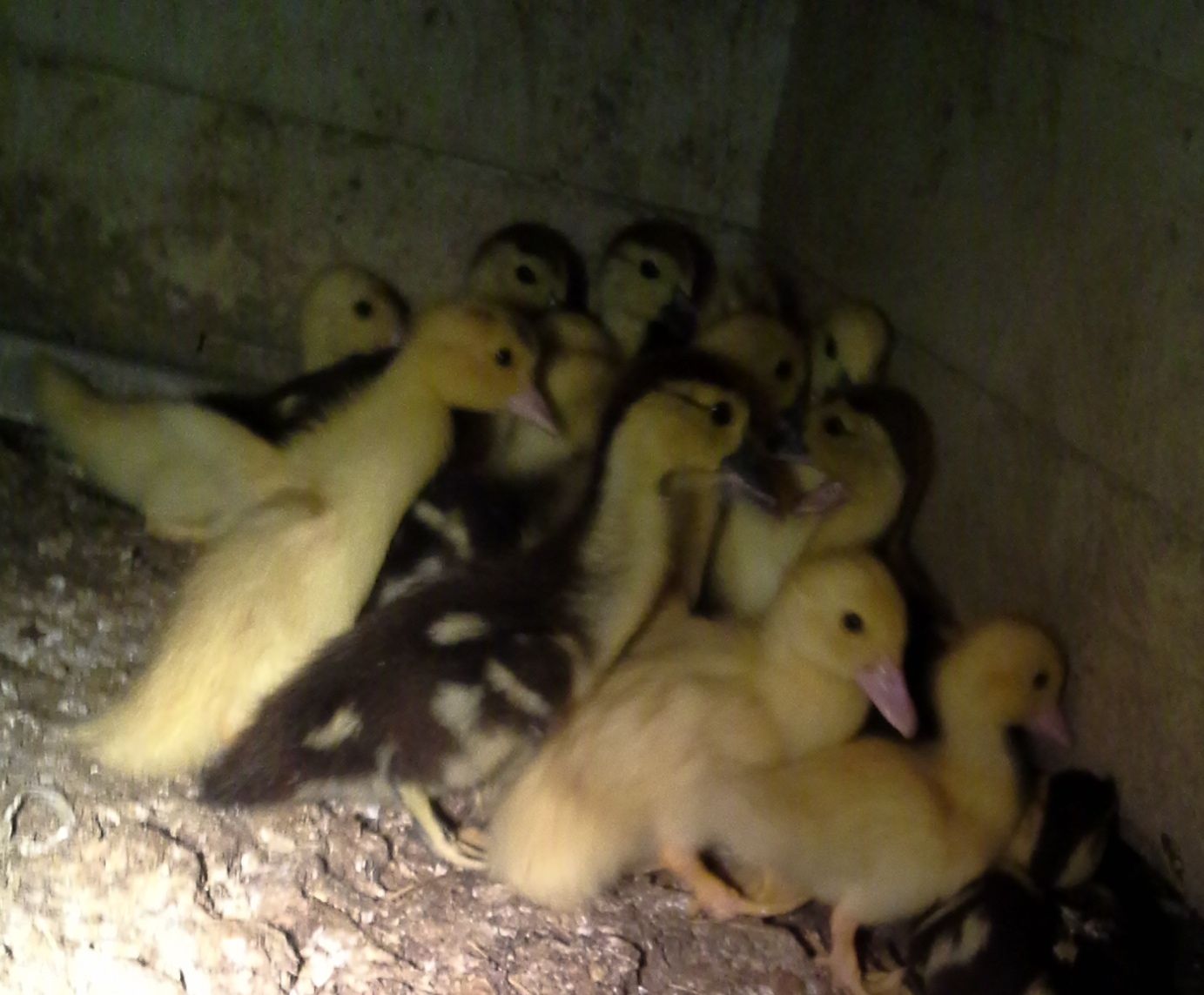 I think this is 5 sets of babies. I lost count. 13 mamas are setting on eggs. At least 12 - 19 eggs per clutch.