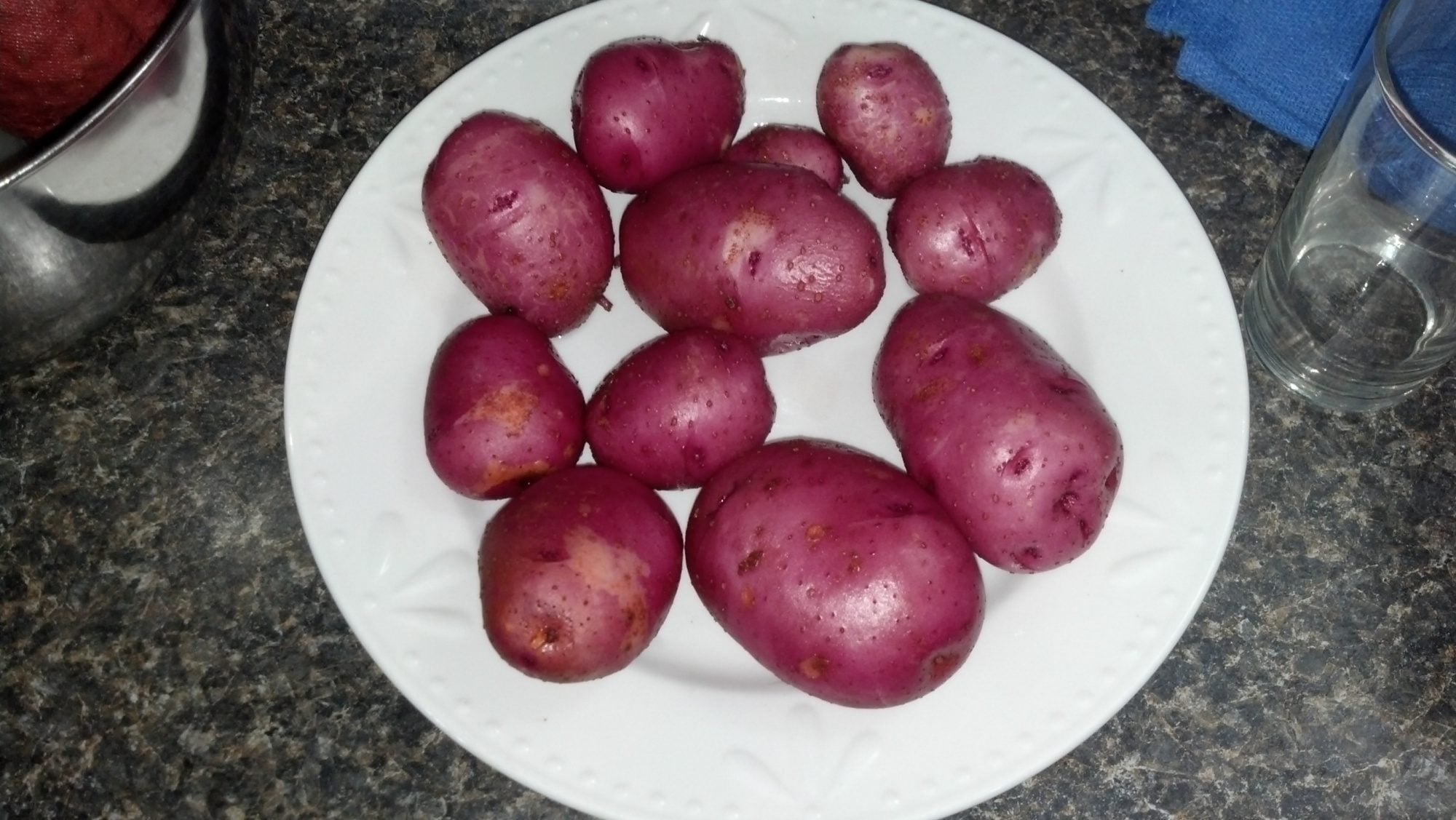 My garden is happy with the rain though. The old coop is completely reduced to a pile of glowing coals now. I ended up with 11 half pints and 6 pints of ruby colored jam. Somewhere between all the work we had a meeting in the garden to see if there were any potatoes actually growing in the potato bed. We stole a few for dinner.......hash browns and eggs
