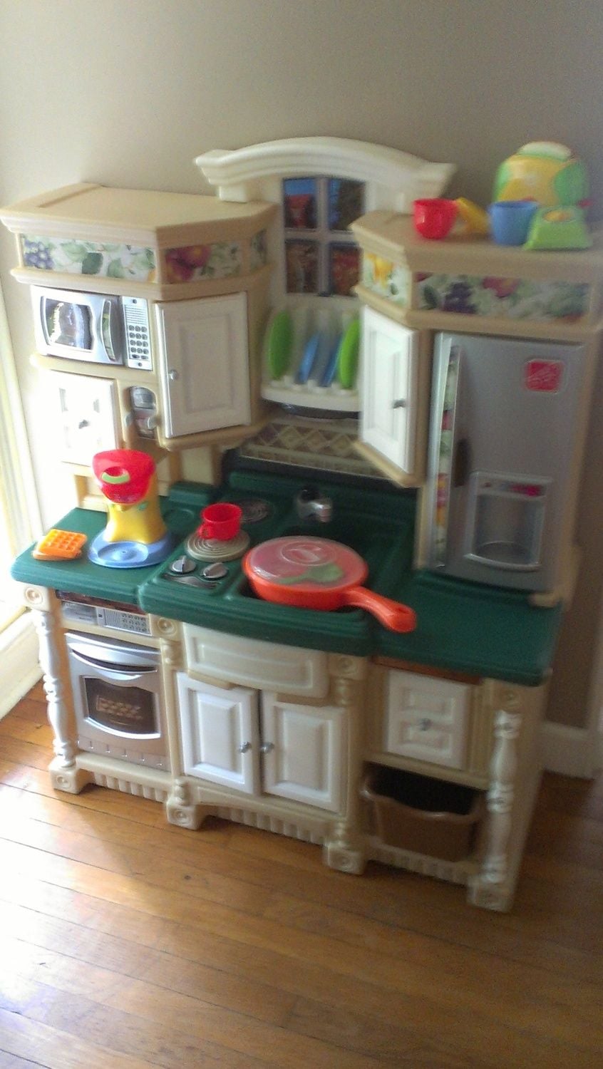 So cute!Was a pleasure to see Prim today! She brought over this crazy awesome kitchen for the kids that has everything! They 'cooked' meals ALL day, didn't fight over it and even cleaned up when it was bedtime*training*?![]()