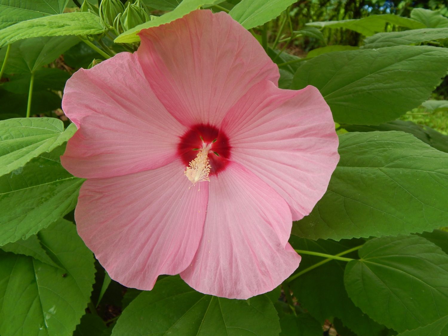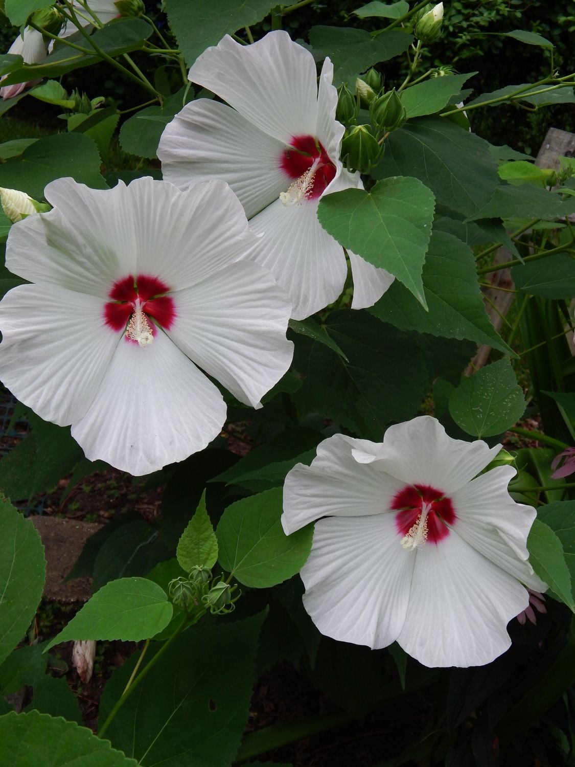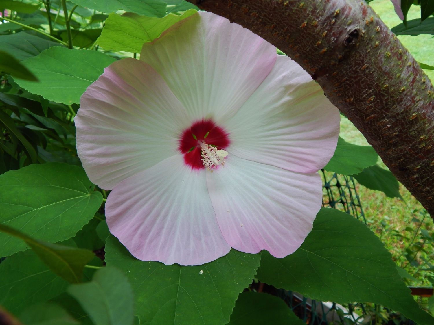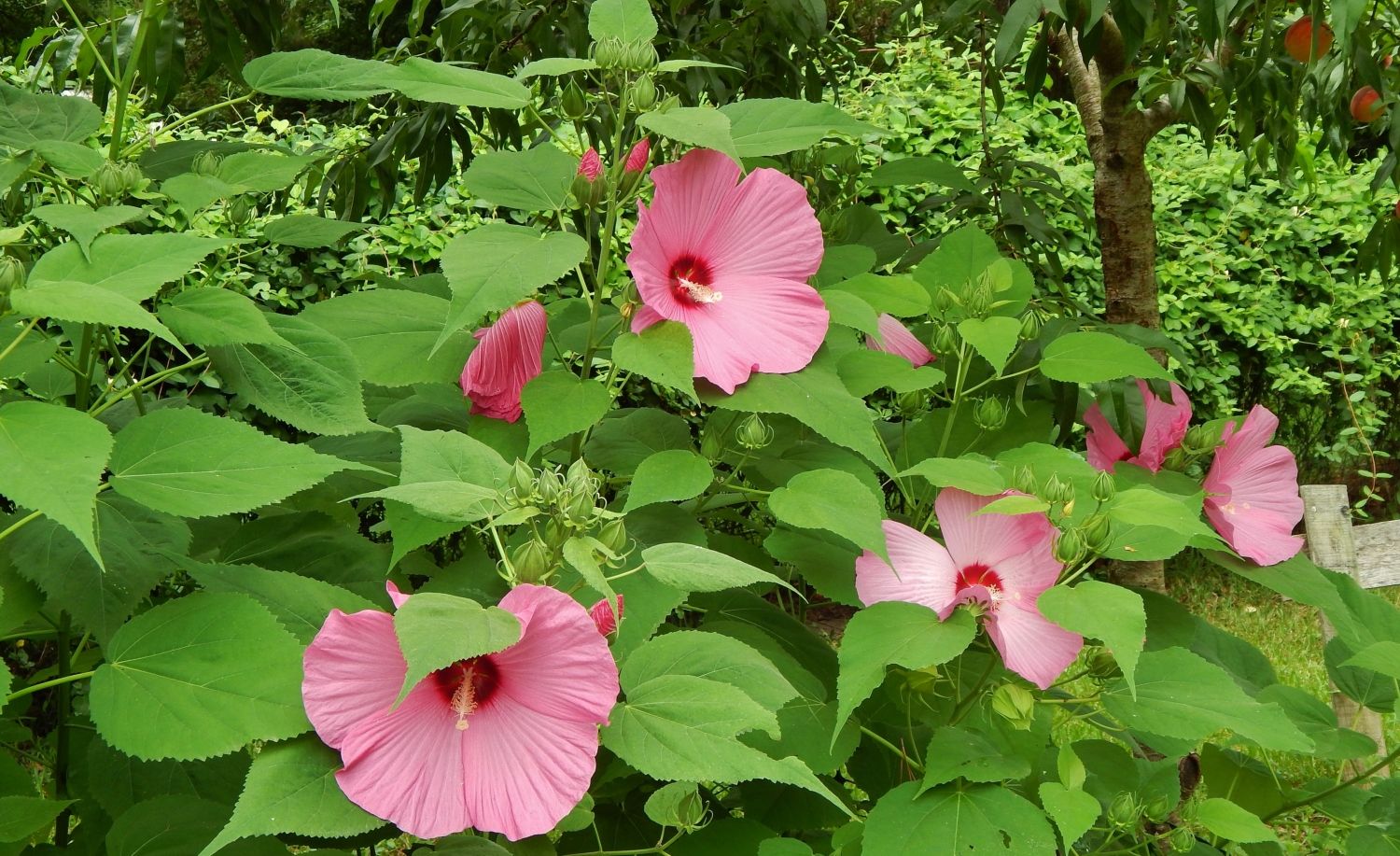 Beautiful flowers! I was wondering why you hadn't been online. Thats great to get so much done. We need to revamp our landscape but it can wait till next year. I just want to get our studio done. Then all the pottery supplies and other hobbies can be moved to one location. Hopefully a organized studio.lol PamWell folks, I am no Superwoman, that I know for sure. But I do have a Superman behind me giving me a constant push. He is on "vacation" from his regular job, not from work. So much work around here to do. Our garden is late, late. But we have been changing the layout and getting lots of little jobs in there done. The whole garden is about 36ft x 44ft with 12 beds and one really long bed. We finally are getting to the point where we will just be waiting on produce to come in and only have a few big jobs left. Cucumbers are coming in and the rest we are waiting on. It will be nice to have it all set up for fall planting without having to do all this resetting. Peaches, Peaches, Peaches! Any favorite recipes? I think I am going to make some peach rum sauce. I have already made pie filling and peach vinegar. I am excited that the vinegar is actually working! My hibiscus bushes that I planted from seed a few years ago are blooming like crazy now! This afternoon we finally started getting some rain and every bloom from this morning had 2 or 3 of different kinds of bees just hanging out in there together waiting on the weather to pass. I am going to make sure they all got out in the morning. With the way that those blossoms collapse they could get trapped very easily. I am so glad that we FINALLY are getting the rain. It has been dancing around us for days. Literally hearing the thunder a mile away and not a drop here. Perfect time after getting all the gardening work done. We were able to get some extra shelves made today for my canning shelves. It will divide each shelf so it will be 2 instead of just one. Then hubby finished up a little project I started. A little ladder that I started for the young chicks so they could get up to the top of their Egg Hut and get out of the rain. We know that a project or project day is always a success when he bloodies something. This time his thumb, opposite side as last time. Drill bit. Blood on the project. It was a success in all ways. We checked to see if the babies use the ladder and they were all upstairs! Yippee!!! Smart little babies!![]()