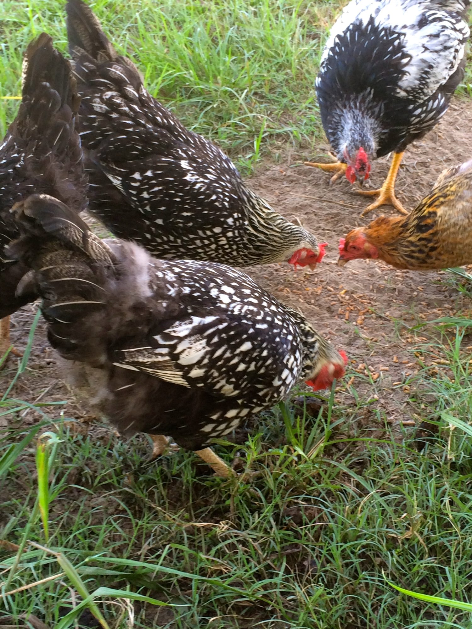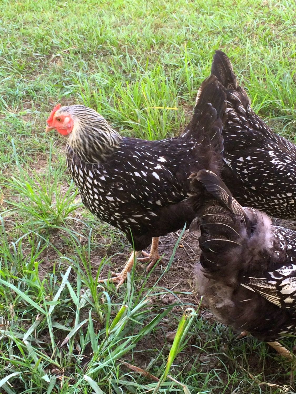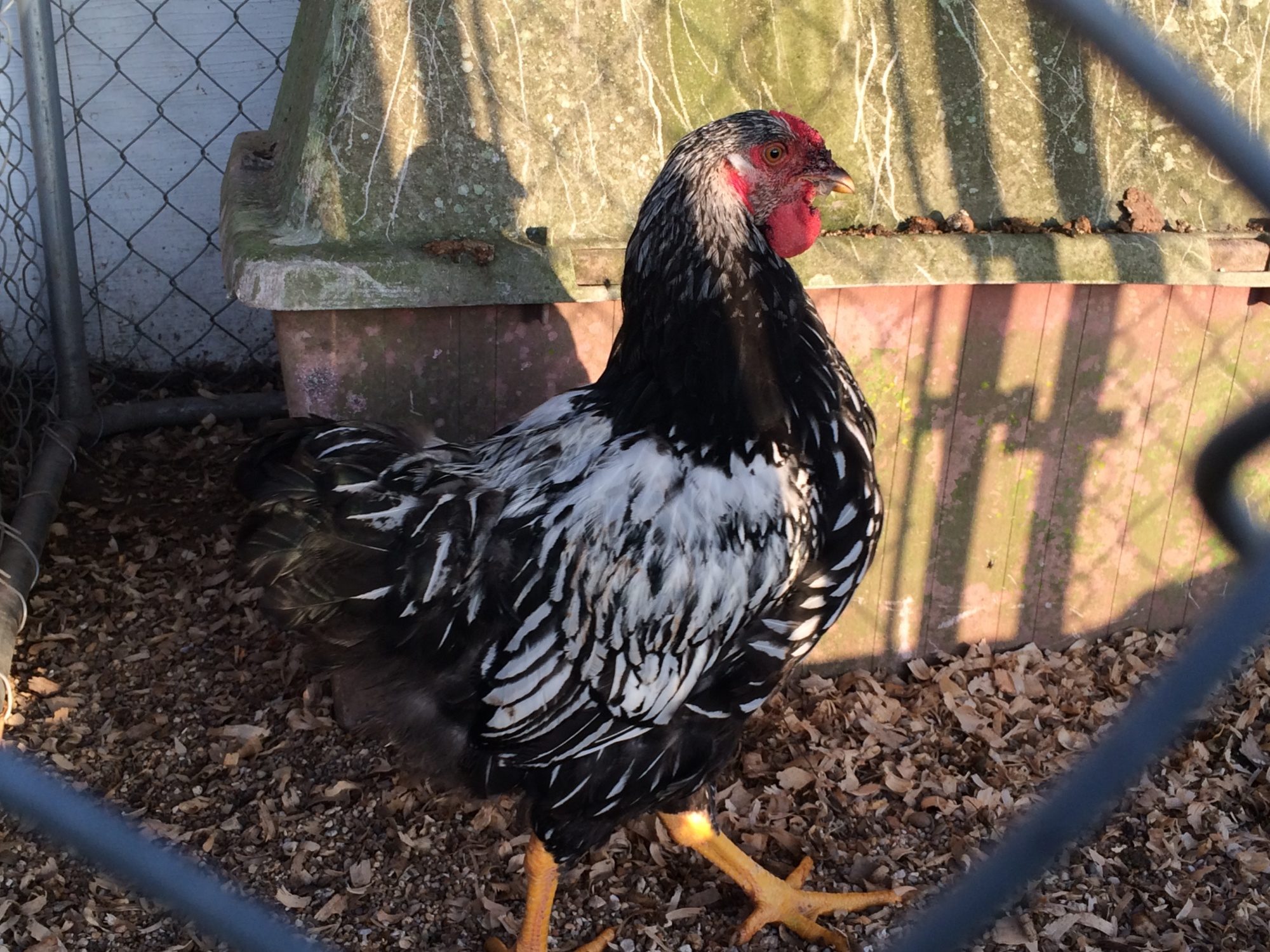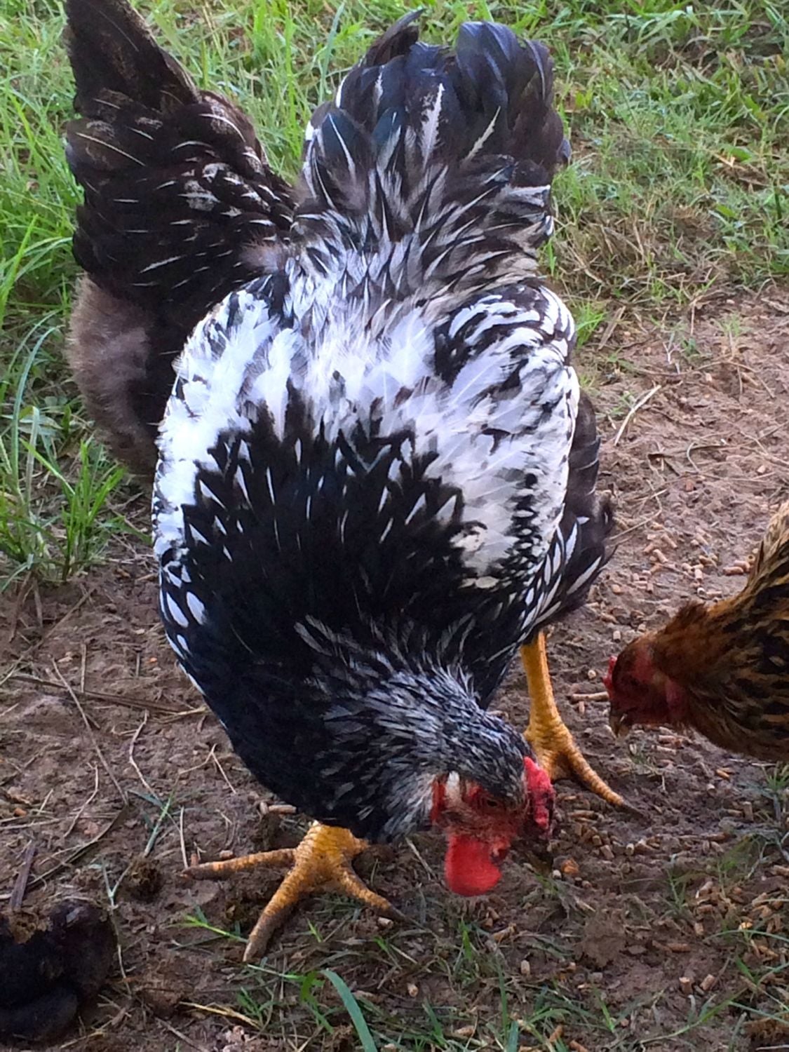 The new wyandotte roo. I'm not sure how old he is, but he barely even has spur nubs, so he can't be very old. He's going to be huge!