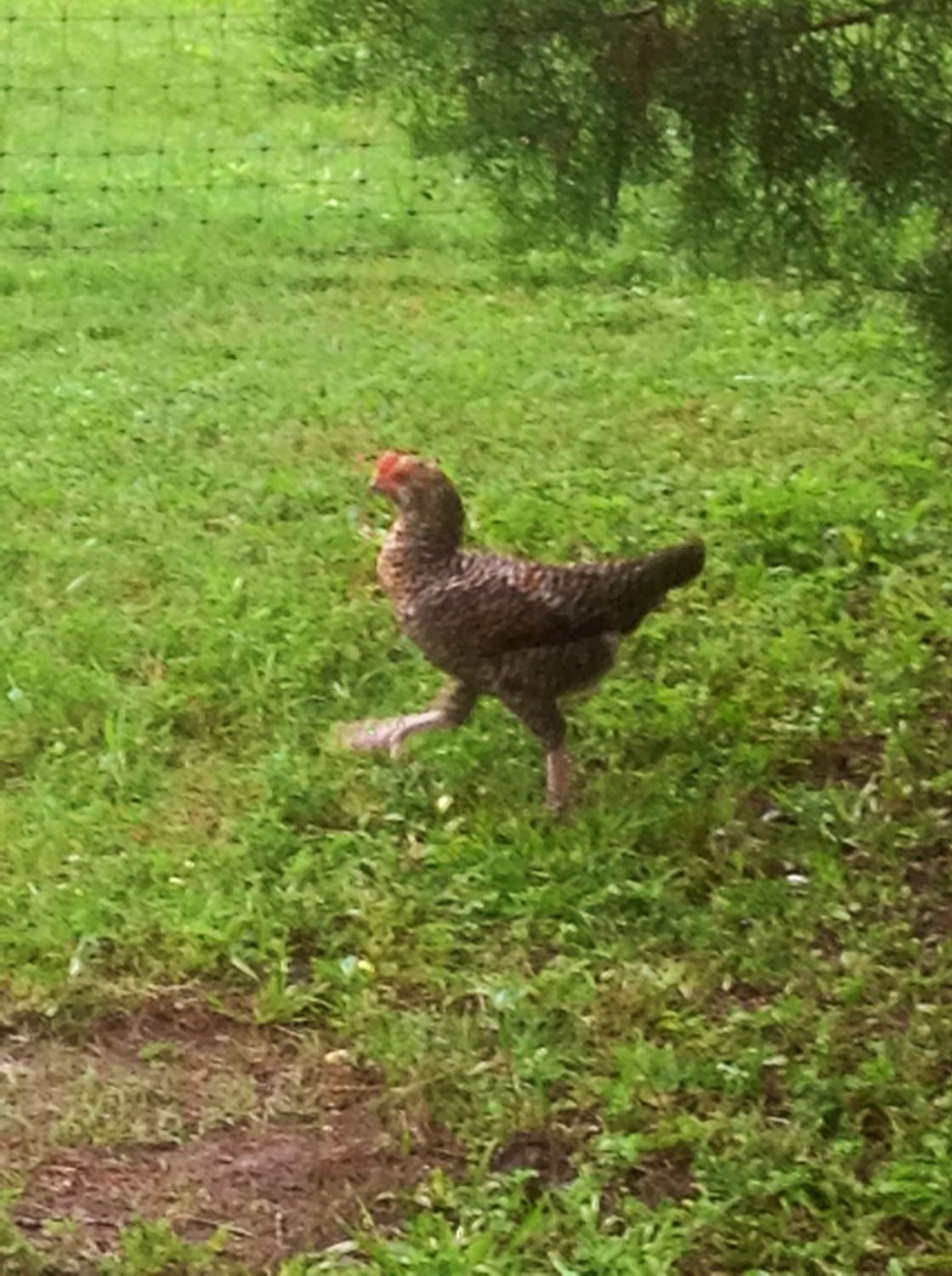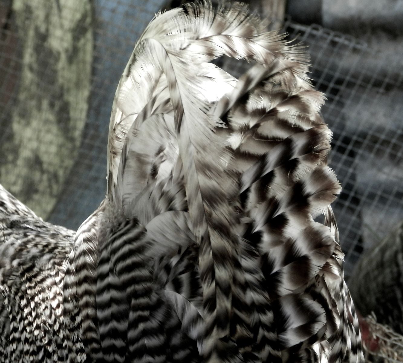 the EE Ihas some gold and grey and black in pattern on it and a pea comb.