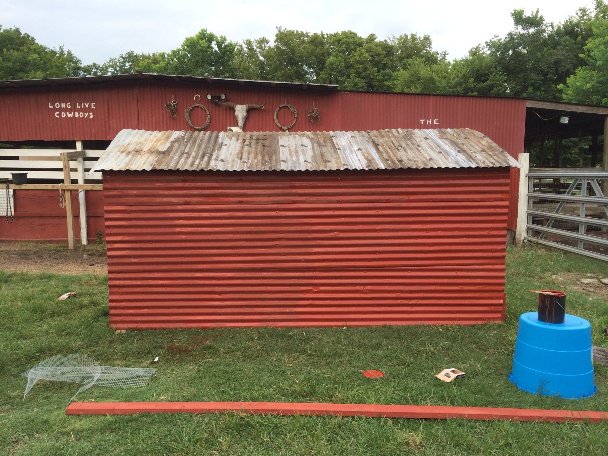 We finally finished the pen today. We checked in at around $250, with about 12 hours put in. We could have done things differently, but I am VERY pleased with how it came out. Our biggest goal was saving money while not sacrificing quality. Our doors and locks hardware don't match, but it saved us money and didn't hurt anything but aesthetics. It's already halfway full.
