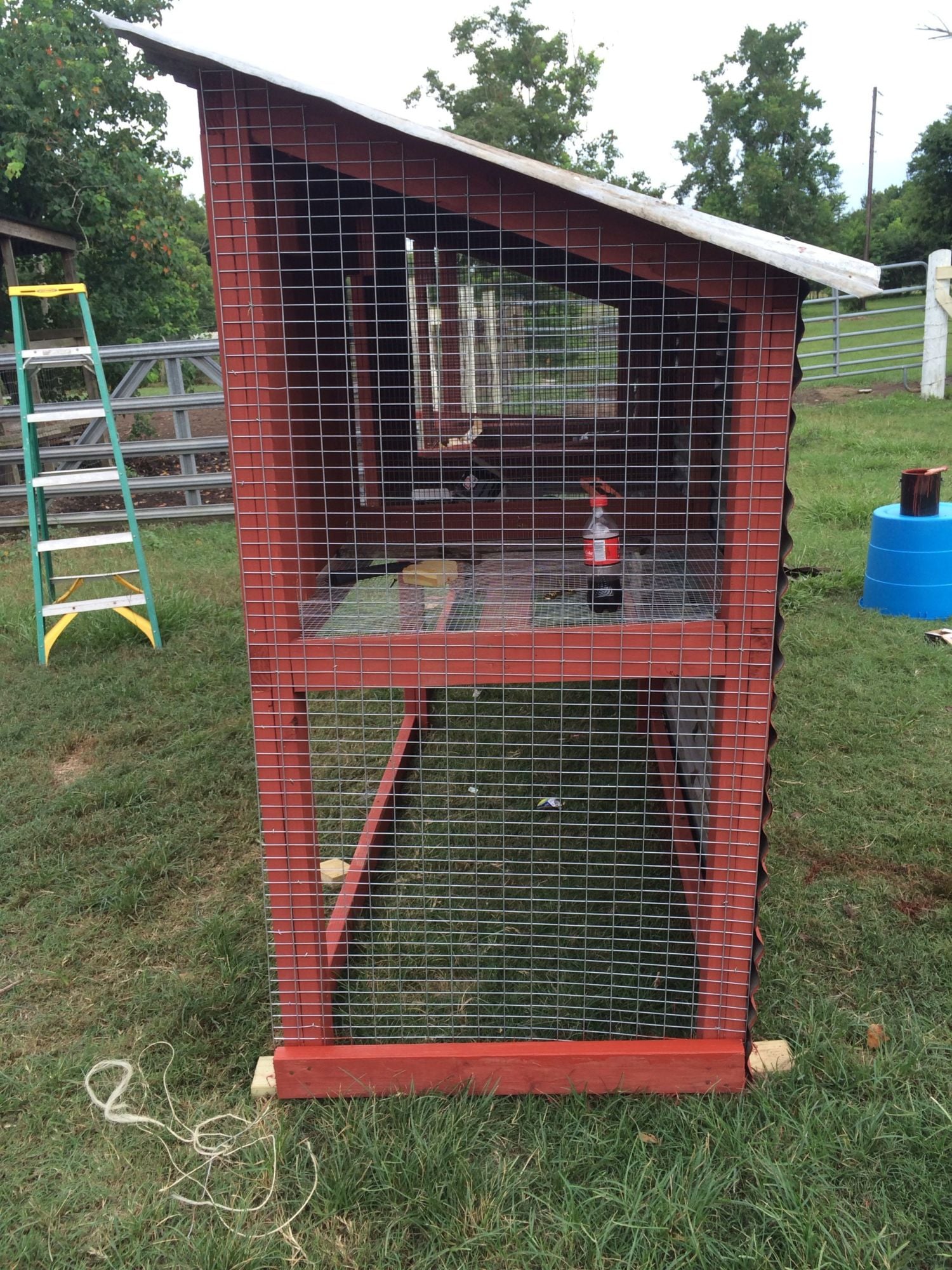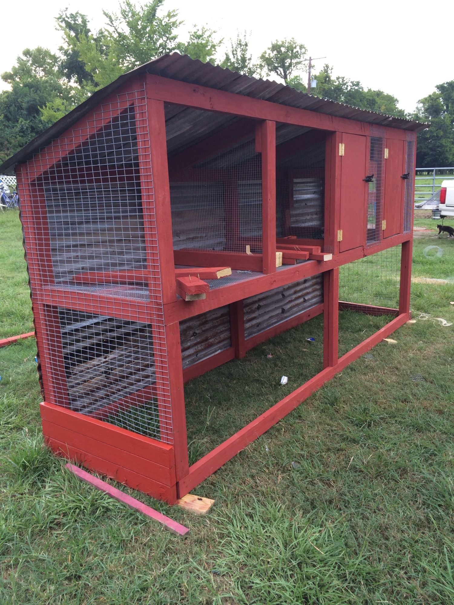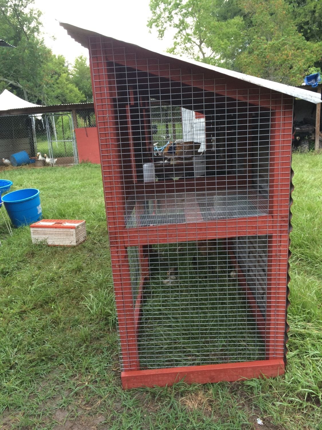 We temporarily put a momma hen with 11 babies in the bottom pen, have a new zealand buck in one pen, and 10 marans chicks in the other. We are supposed to go pick up some more rabbits tomorrow, so it will undoubtedly be full by then. I already want four more just like it!