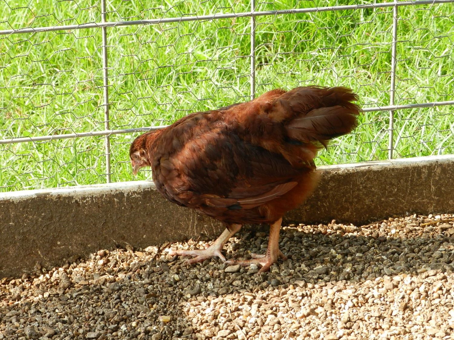 We temporarily put a momma hen with 11 babies in the bottom pen, have a new zealand buck in one pen, and 10 marans chicks in the other. We are supposed to go pick up some more rabbits tomorrow, so it will undoubtedly be full by then. I already want four more just like it!