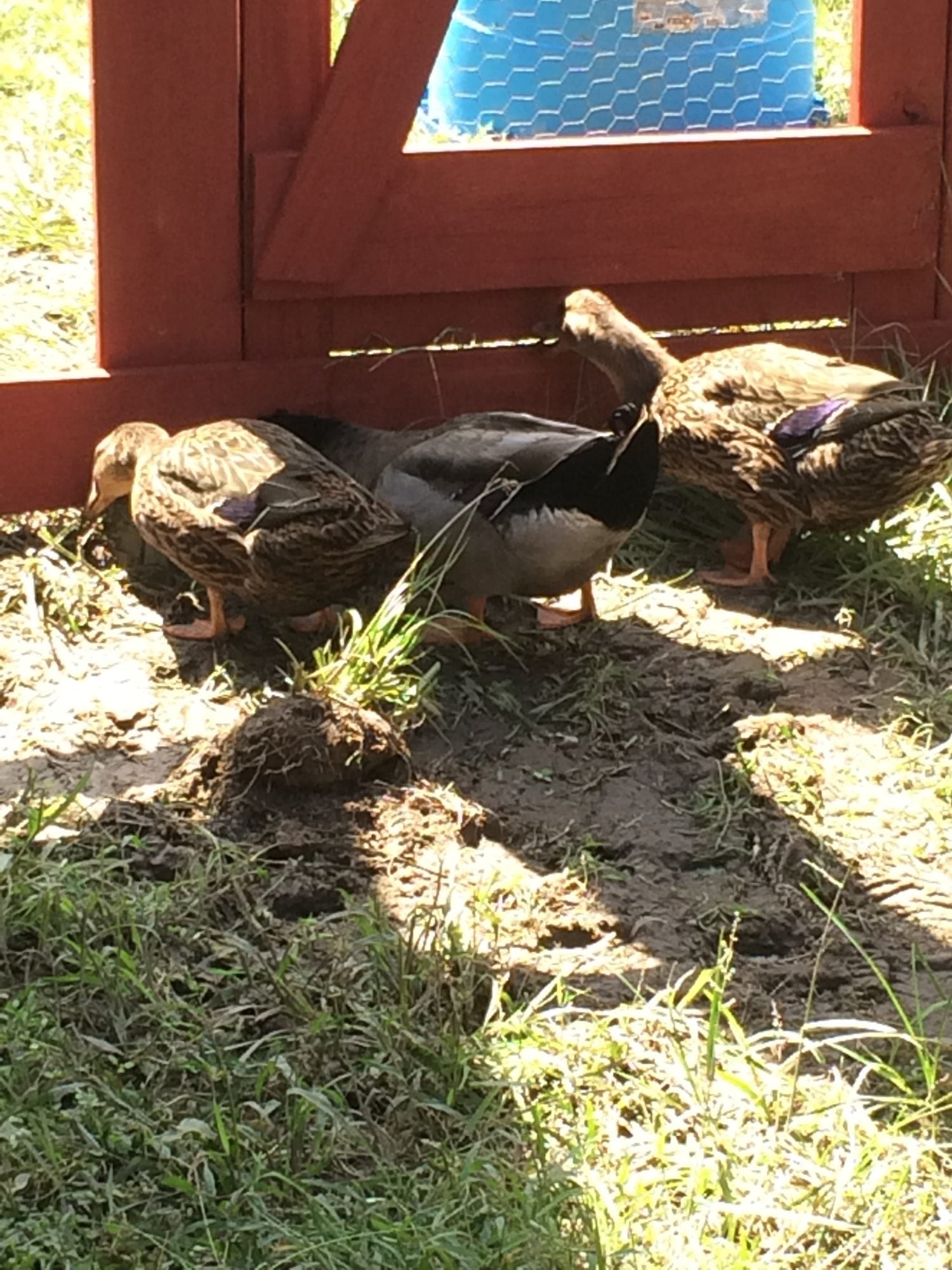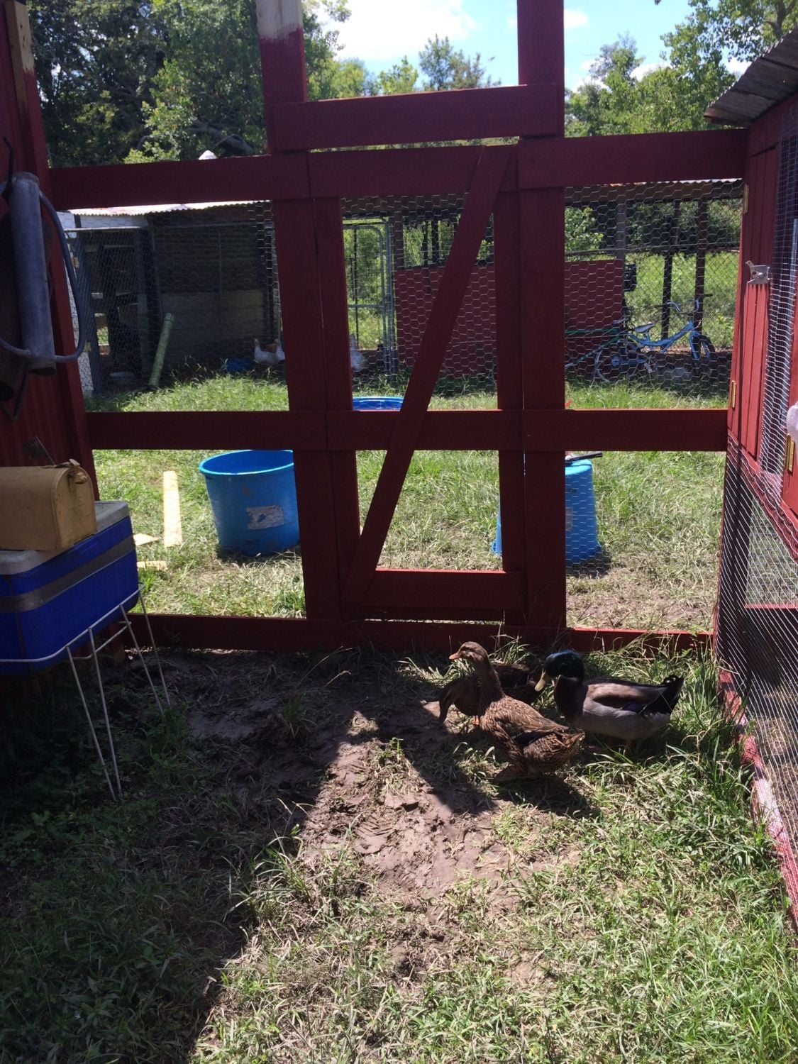 Hey guys! Just checking back in with y'all. We finally, finally (you guys don't know how glad I am), finally separated the mallards from the Rhode Island Reds. We tacked on two walls between the pens we built earlier and a building we had it facing, and used chicken wire since the area its in is already enclosed. We managed to start and finish it today. Perfect for the ducks. Even at 2 o'clock half the pen was shaded by the building- as you can see in the pictures. Its also twice the size of the pen they were previously in, so everyone wins. The ducks get a huge upgrade, and the chickens get more space.