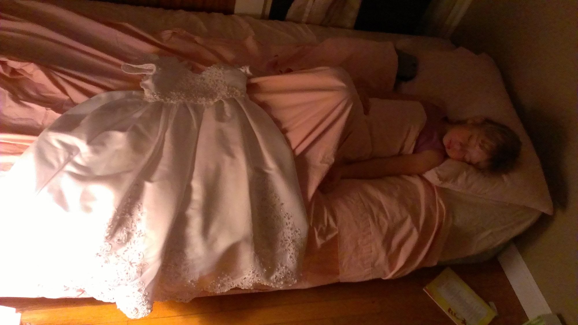 Primrose gave this beautiful dress to my daughter. Lol I had to go to work and when I came home my girl was sleeping...with the dress