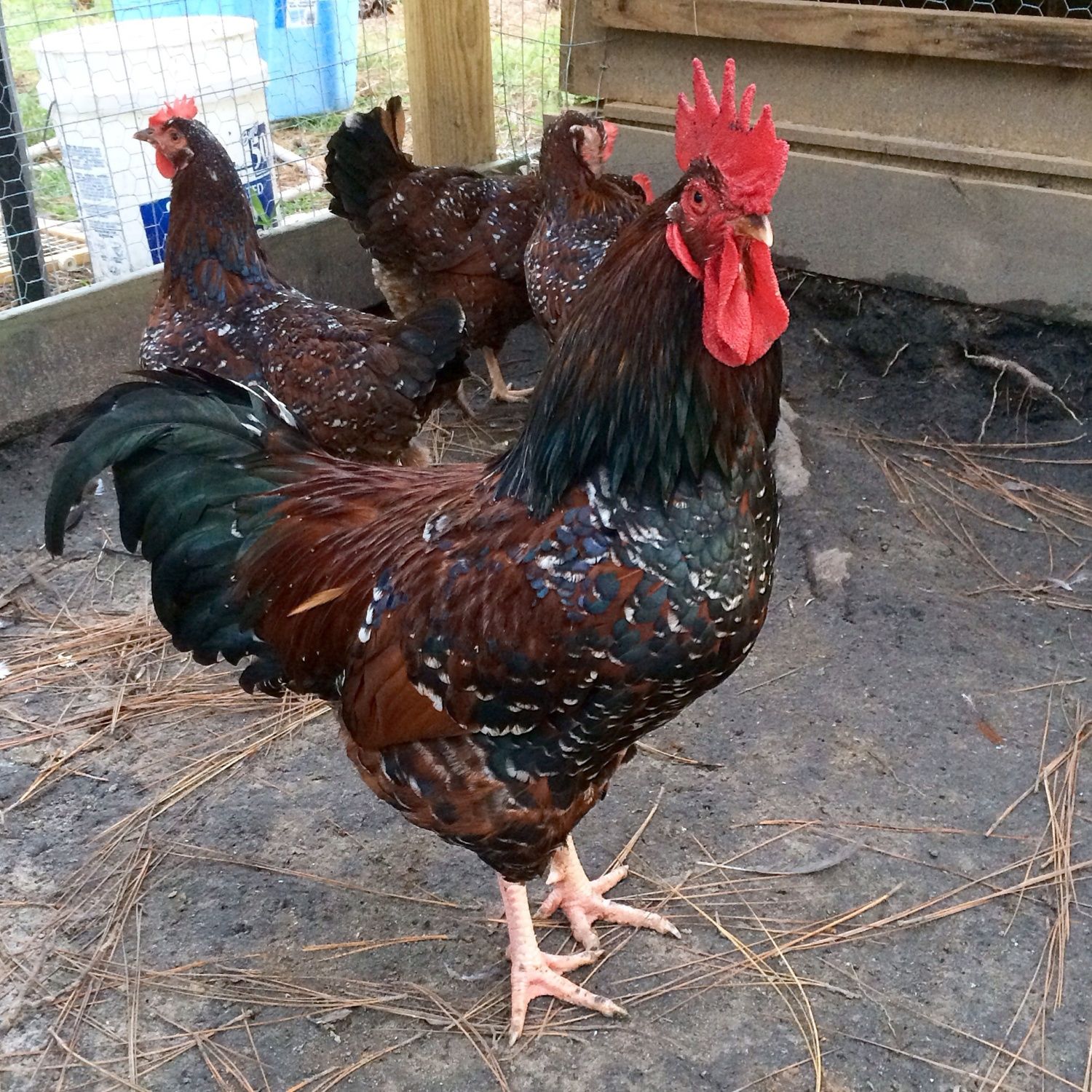 My very favorite little 2 mo pullet Basque died a couple of months ago due to a predator. I wanted some more but I wanted really good quality and I found it. CackleJoy in Ca has them, bought from Ron Ott. They are a special breed that his strain from Meg has a cockerel that was personally hand carried in the plane from Spain. The best. So happy. I've been trying to get them for months. They are heat loving, very intelligent and incredibly friendly. Forage great and while not docile they pretty much get along with everybody. I can't wait to get a camera to take photos.![]()