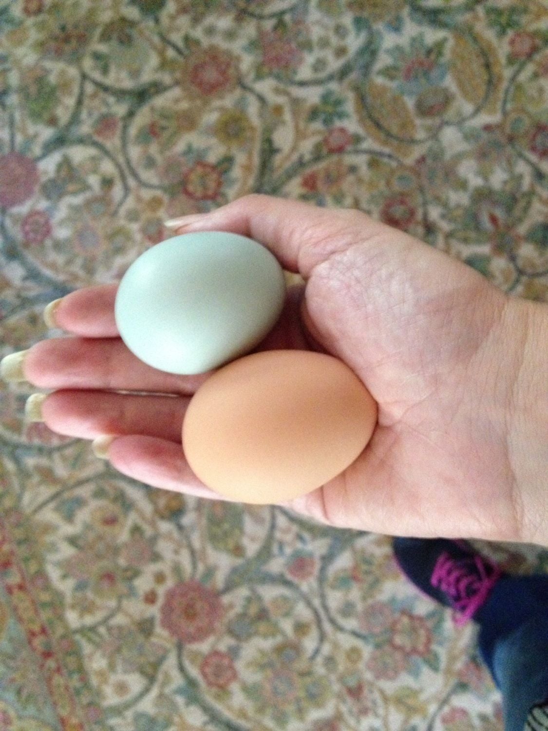 I took another pic of the blue Legbar egg. Hope it shows true to color its robins egg blue. Pam![]()