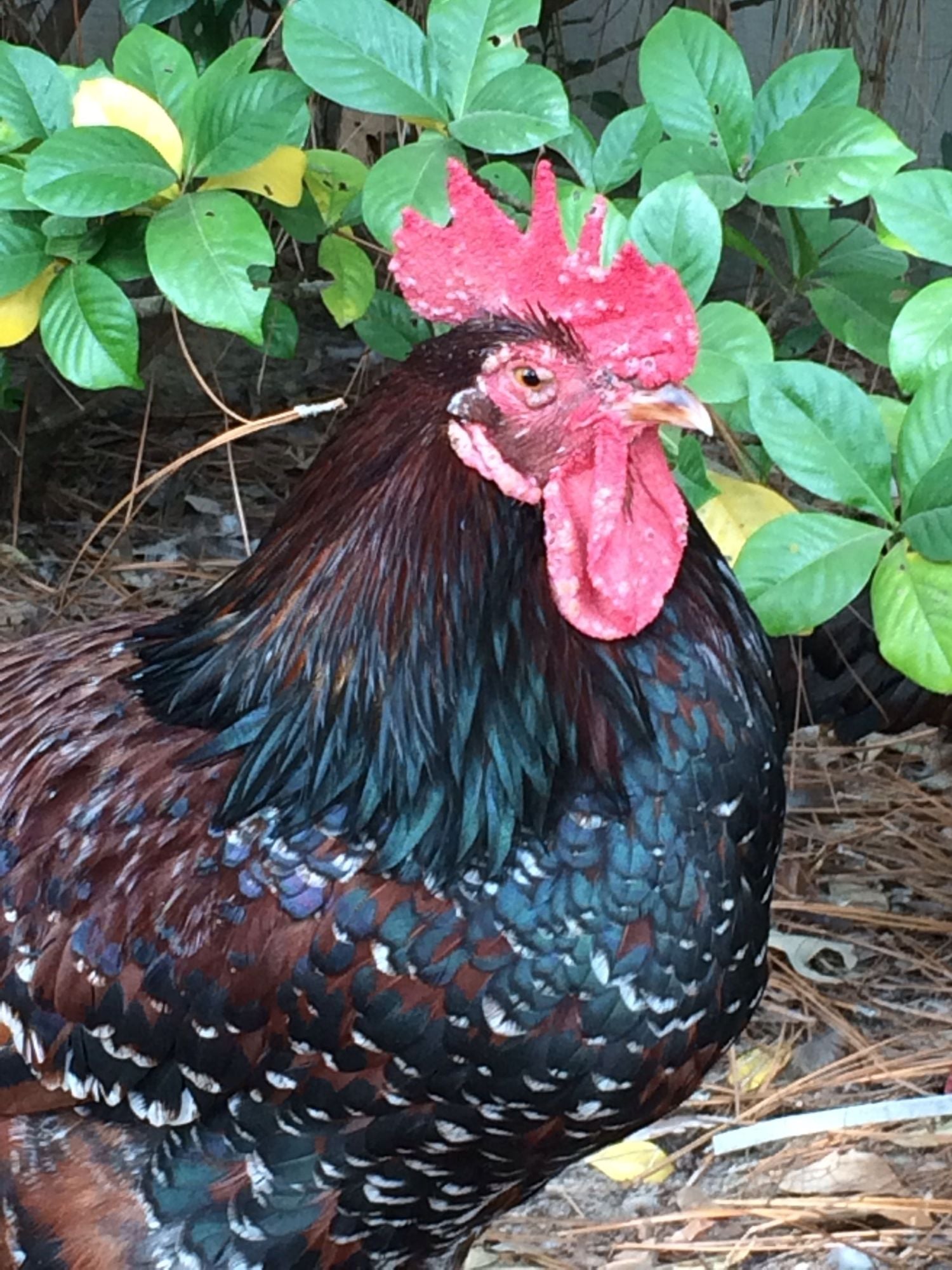 My poor rooster. He had a bit of foam in his eye this evening, which I read was a respiratory symptom. This fowl pox is just working it's way through the flock; several hens are getting the white patches.